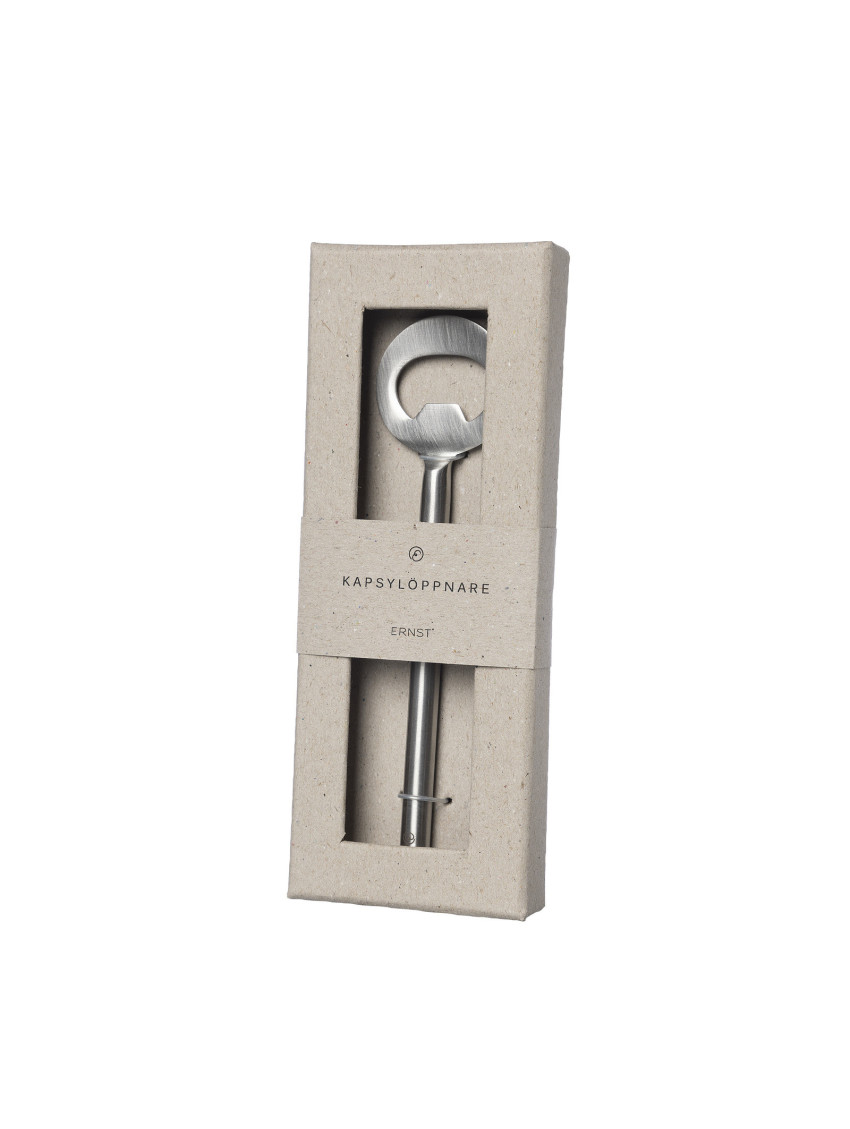 Elegantní otvírák na lahve z nerezové oceli. Dodávaný v pěkné dárkové krabičce, což zaručuje úspěch při darování. Ve stejné sérii značky ERNST najdete také vývrtku na lahve a lžičky.