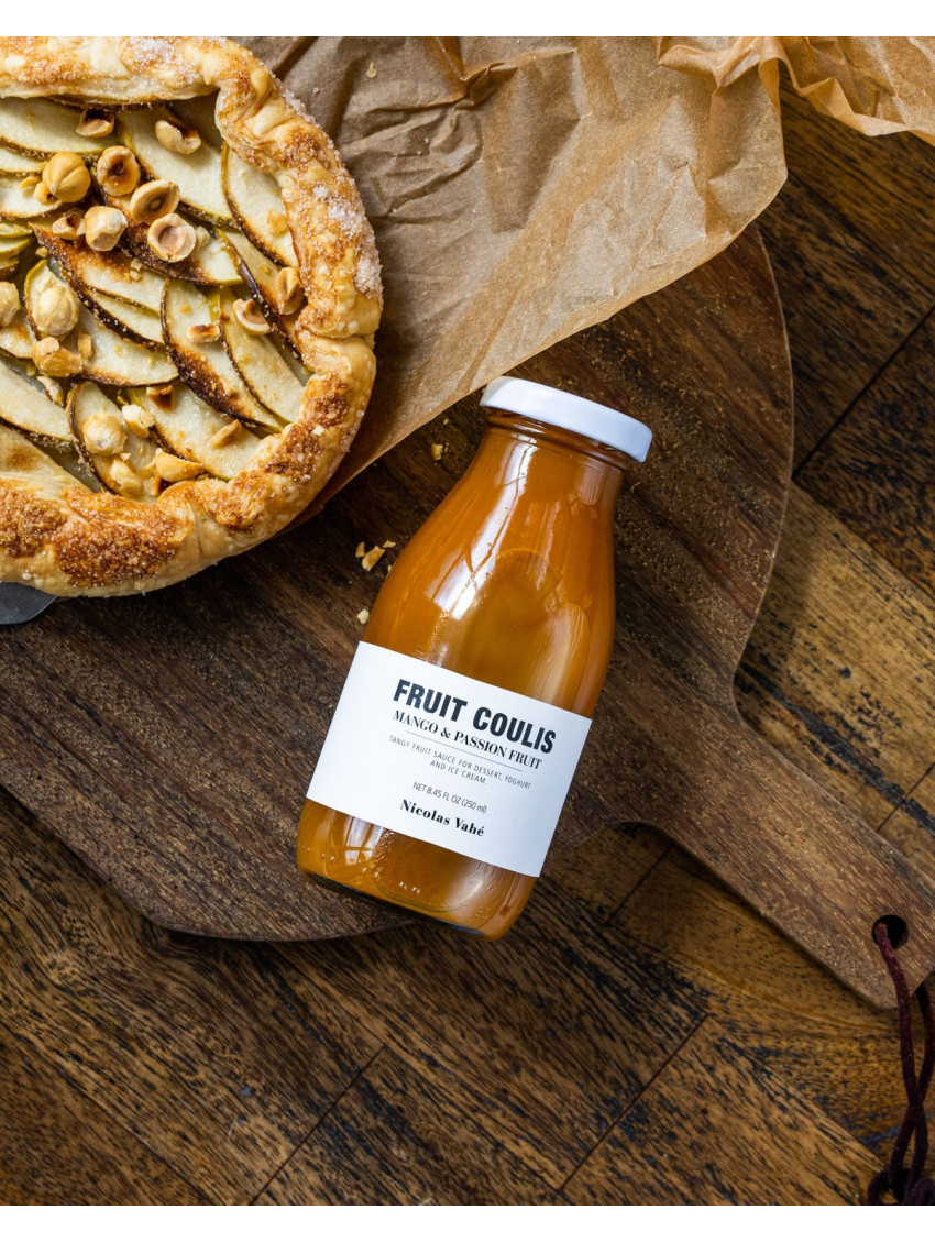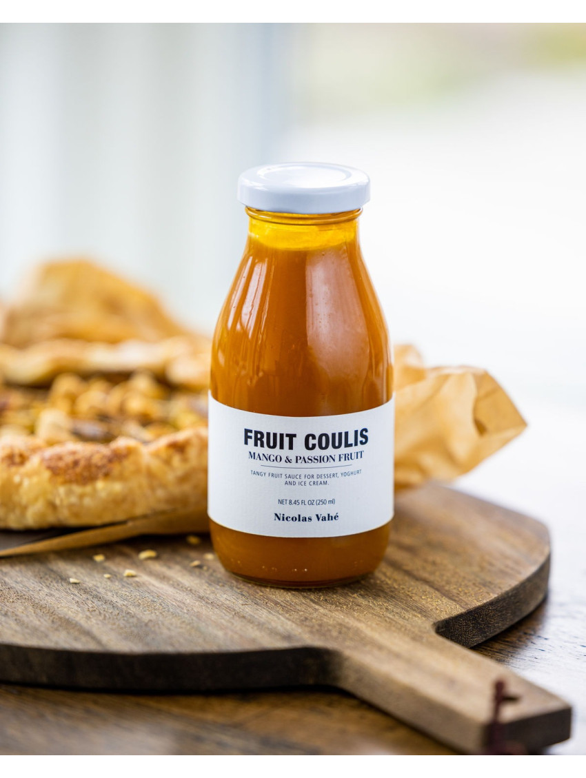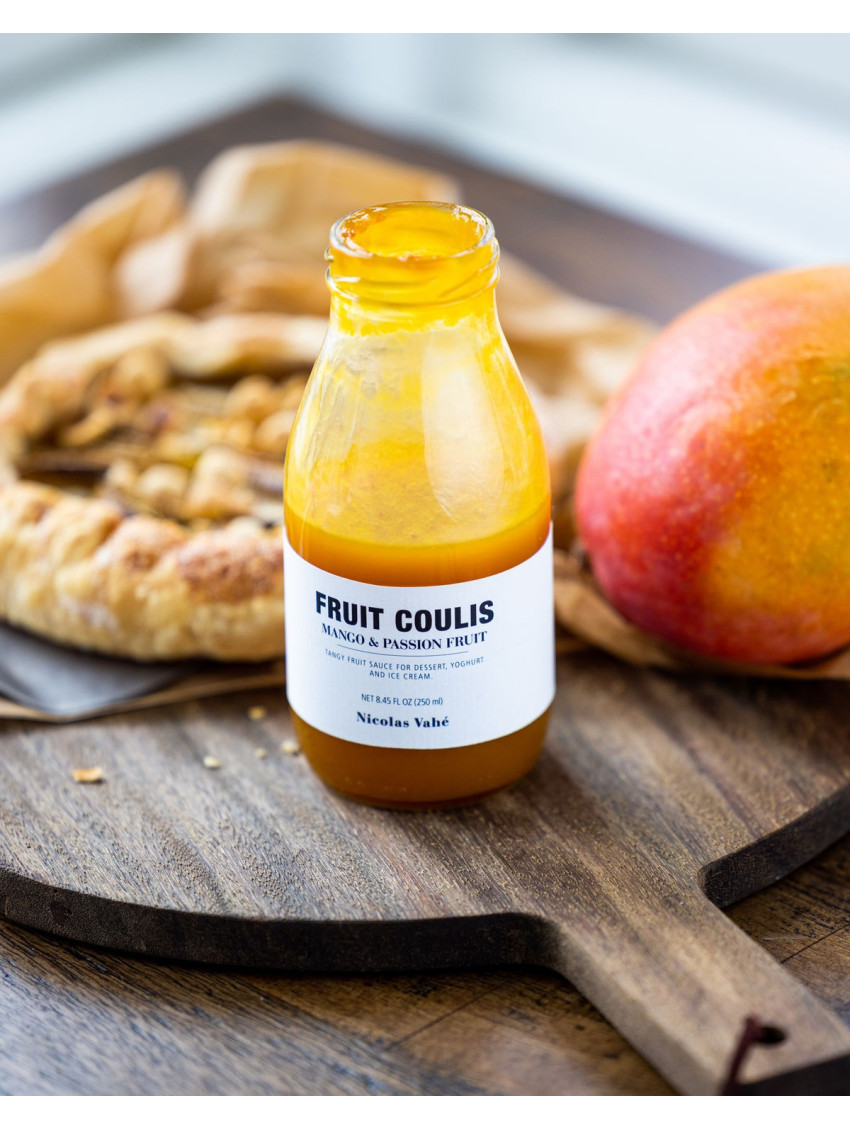 Doplňte své dezerty, jogurt a zmrzlinu tímto ovocným protlakem od Nicolase Vahého. Jemné a pikantní se svěžestí manga a mučenky. Duo stvořené pro pozvednutí vašeho jídla, ať už ho podáváte teplé nebo studené. Pokapejte protlakem vanilkovou zmrzlinou a váš ranní jogurt bude okamžitě zajímavější a dezerty lahodnější. Proč to nezkusit s panna cottou? Není potřeba mnoho, abyste pozvedli své jídlo a dopřáli sobě i svým hostům skvělý zážitek. Stačí použít toto ovocné coulis.