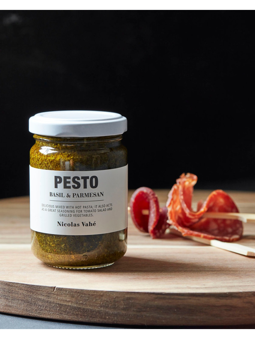 Pesto s bazalkou a parmazánem je klasikou v řadě produktů Nicolas Vahé. Pesto se vyrábí z těch nejlepších produktů z Provence. Použijte ho jako přílohu k lahodnému tapasovému talíři nebo jako marinádu do čerstvého salátu s mozzarellou a sušenými rajčaty. Můžete ho také použít k přípravě snadného a rychlého těstovinového pokrmu. Jednoduše pesto vmíchejte do hrnce s čerstvými těstovinami a během chvilky budete mít lahodný a chutný pokrm.