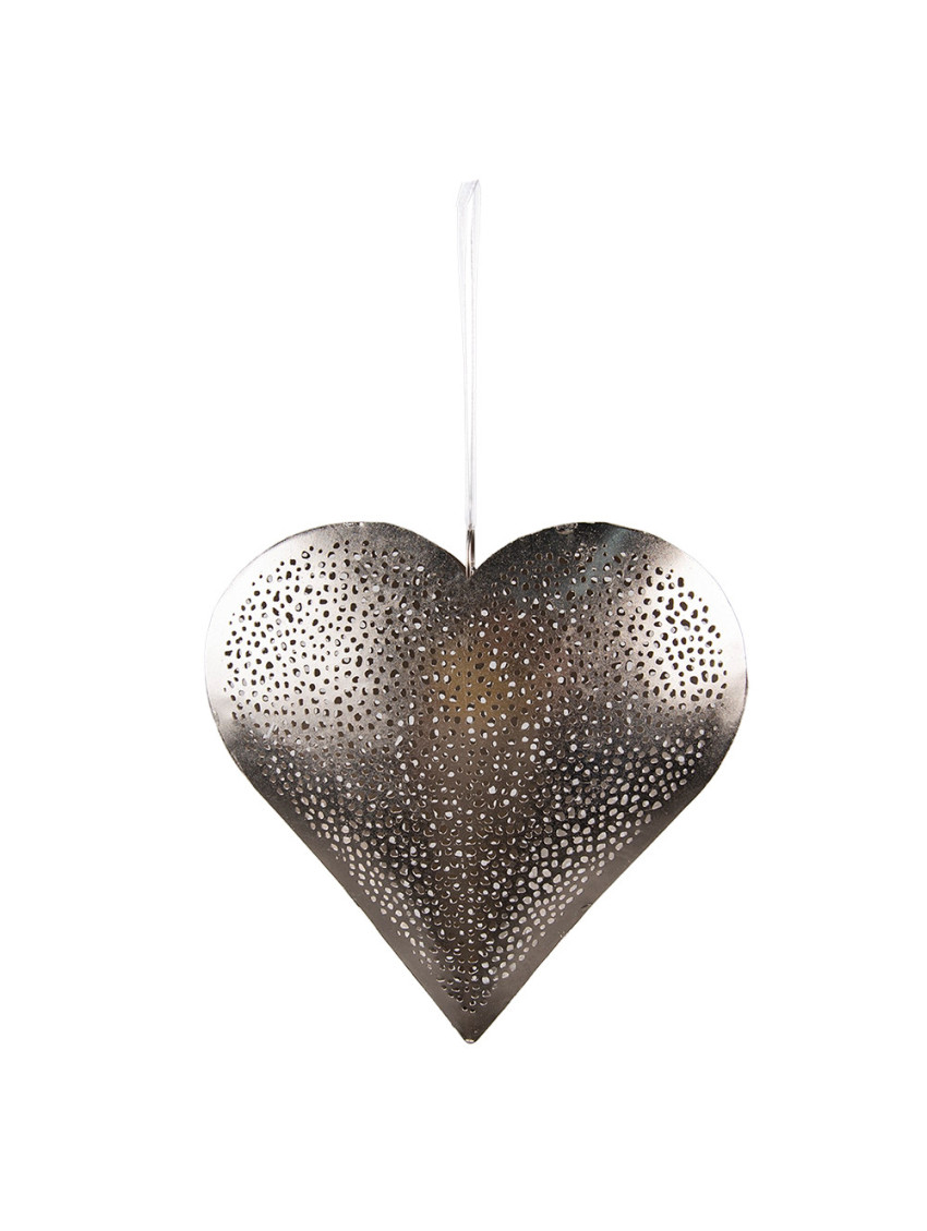 Stříbrné kovové srdíčko můžete zavěsit do okna, pověsit na okenní kličku nebo jen opřít třeba na poličce.