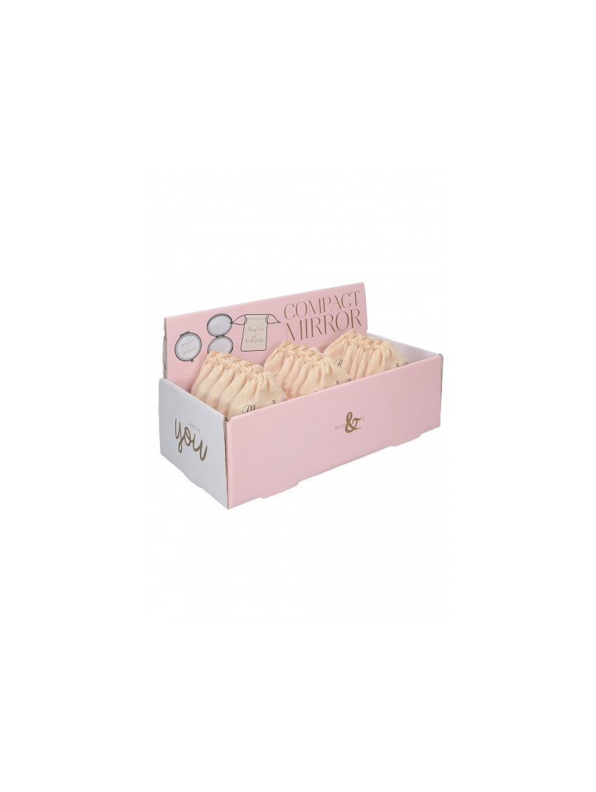 Zrcátko má sáček s tkaničkou se stejnými frázemi. Tento praktický malý pomocník je ideální do každé kabelky. Kdykoliv si můžete zkontrolovat váš vzhled přímo na místě.