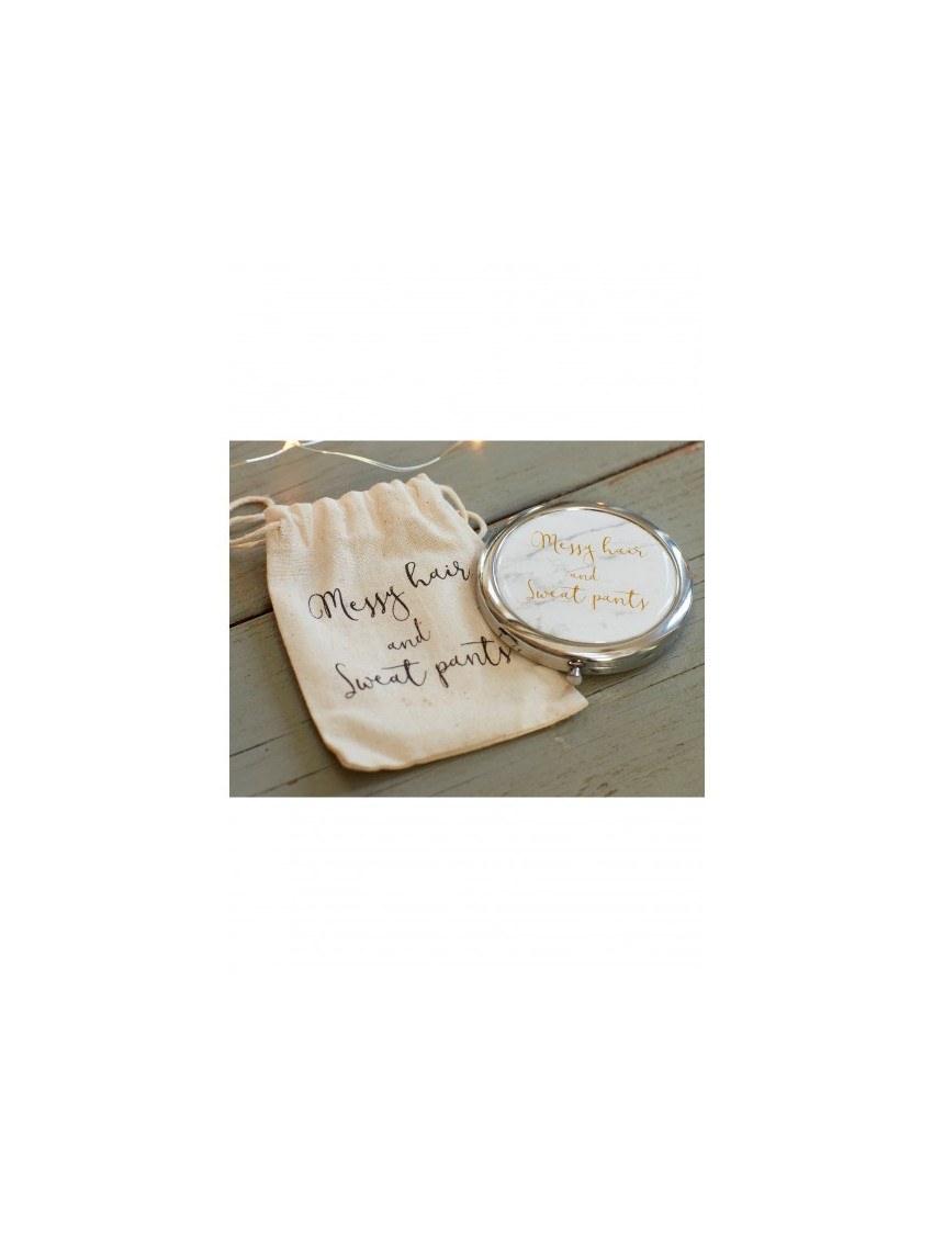 Toto zrcátko jako dárek pochází z kolekce Ava & I dokonale vyvažuje ženskou krásu v moderním stylu. Kvalitní kompaktní zrcátko se otevře jako kapesní hodinky a odhalí zrcátko na obou stranách. Stylově navržené s krásným mramorovým efektem se zlatým sloganem 'Messy hair and sweat pants'.