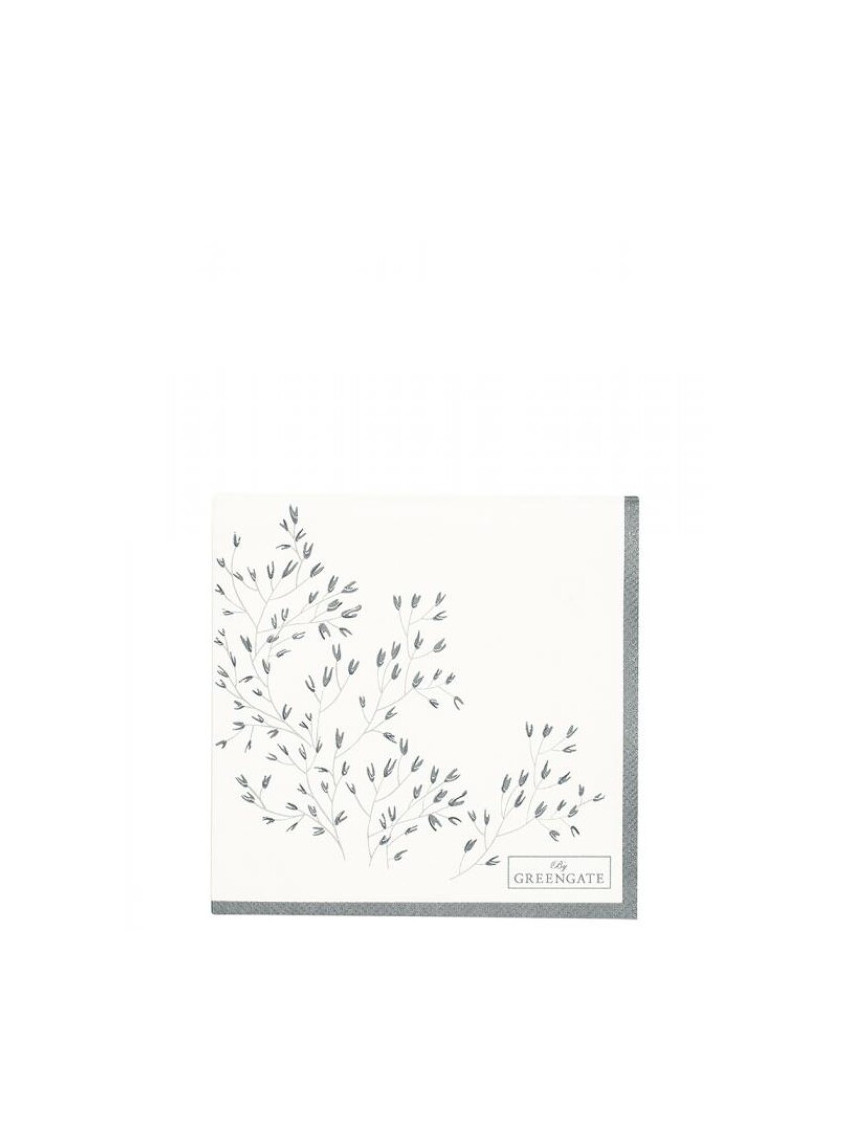 Papírové ubrousky Ofelia dánské značky Green Gate s motivy šedých kvítků roztomile doplní Vaše stolování.
