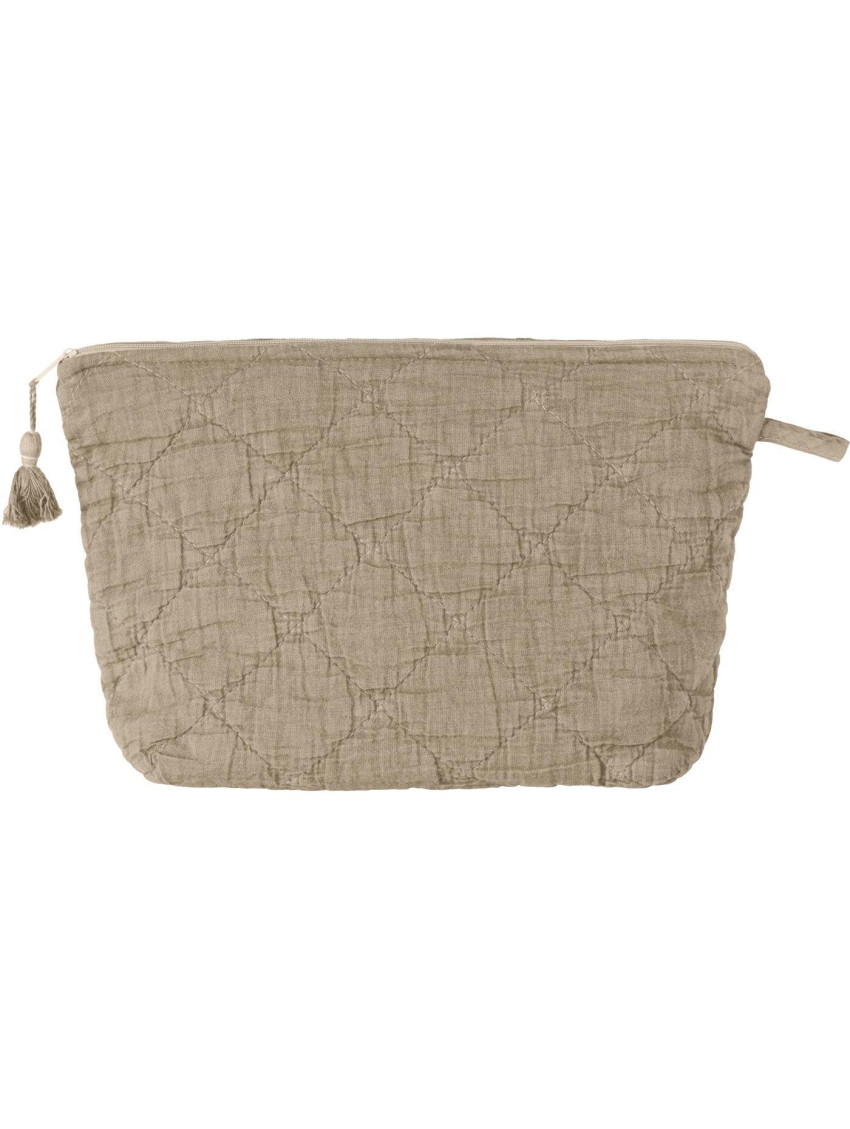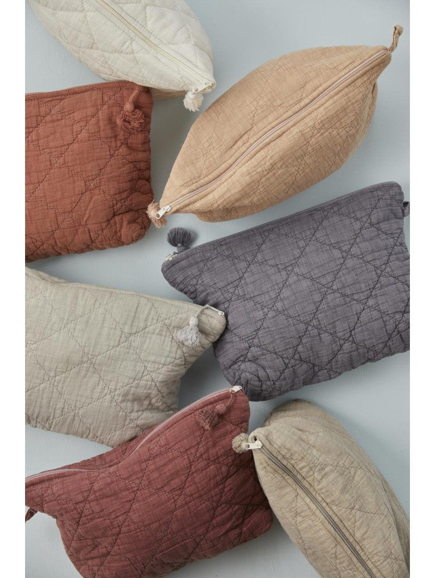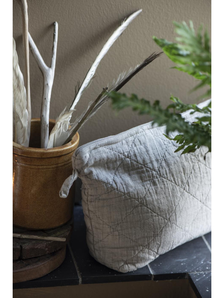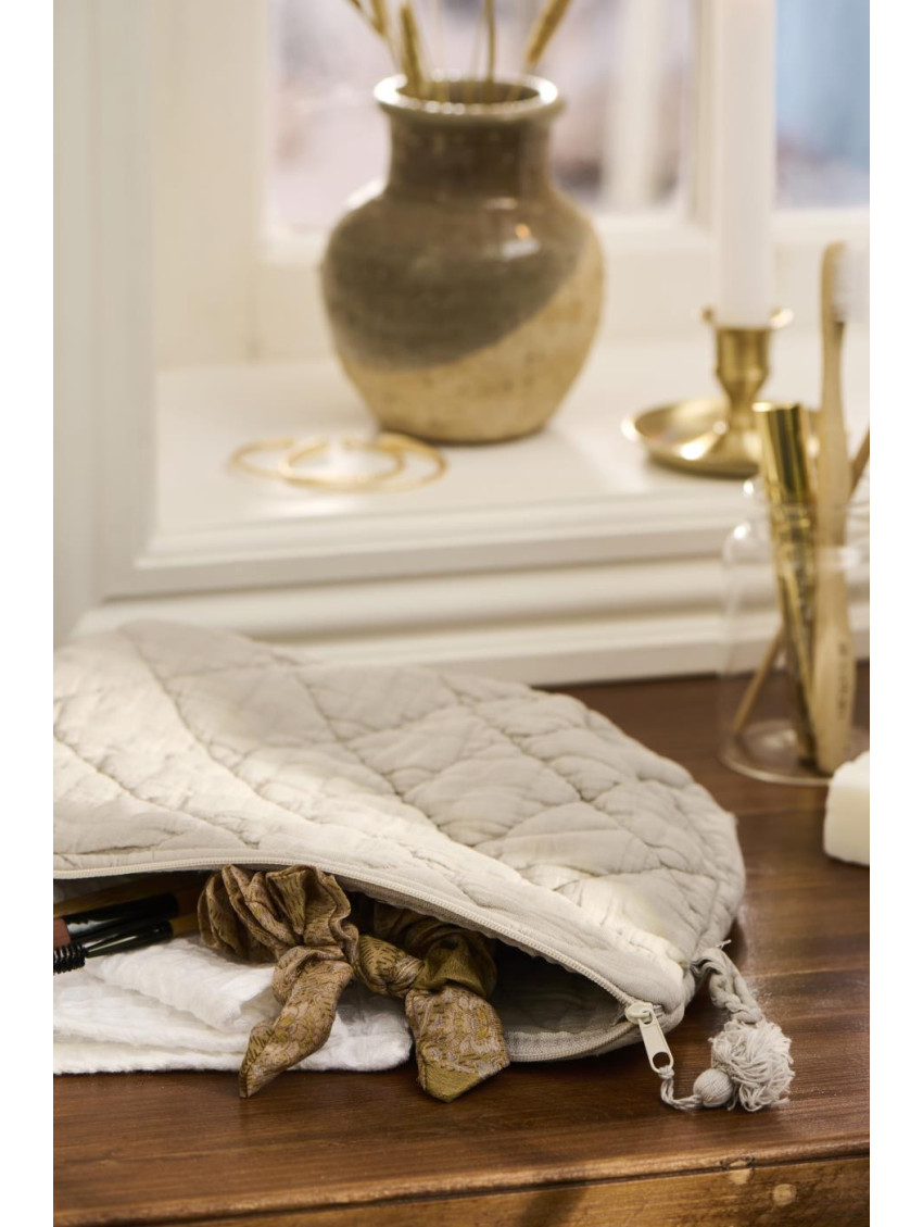 Bavlněná taštička v barvě lněných kvítků od dánské značky Ib Laursen je z měkké prošívané tkaniny, má praktický zip a velikostně se hodí na veškerou dekorativní i pečující kosmetiku, kterou na cestách potřebujete.