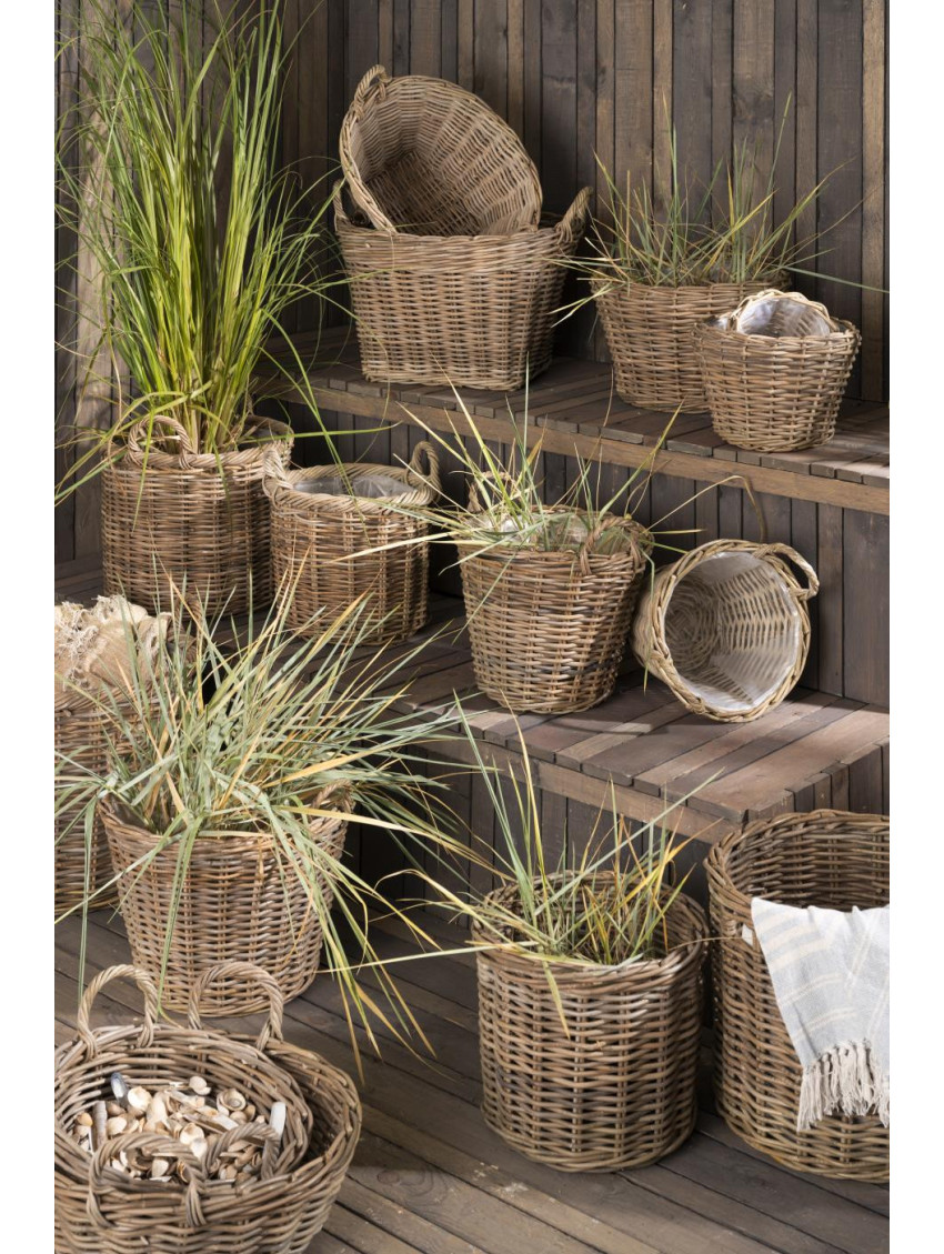 Ratanový koš je pletený z tlustších, pevných proutků ratanu a má igelitovou vložku kvůli zalévání. Překrásně bude zdobit zádveří s olivovníkem, oleandrem, citrovníkem, nebo eukalyptem uvnitř, avšak vložit do něj můžete i své oblíbené deky a plédy, ale třeba také polínka ke krbu. Dvě prostorná ucha dobře padnou do každých rukou a usnadní přenášení uložených nezbytností.