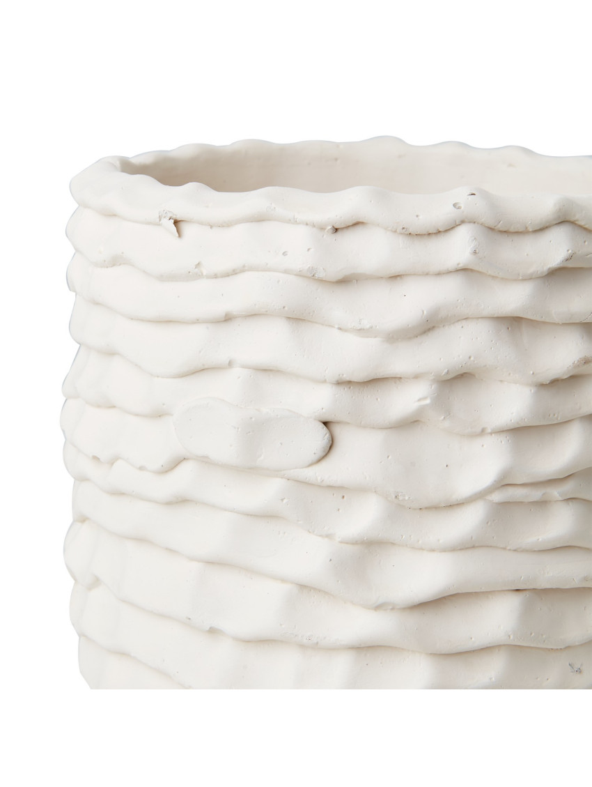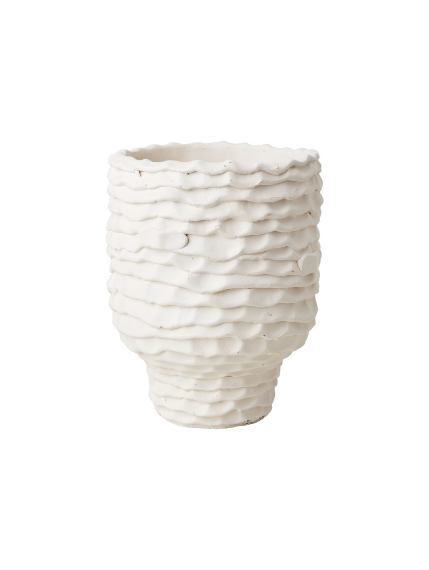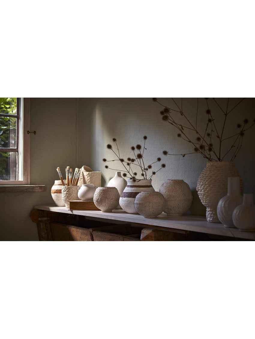 Keramická váza Ernst s jedinečným designem v podobě sochařských linií. Rozměry: 18 x 18 cm Matná bílá přírodní barva