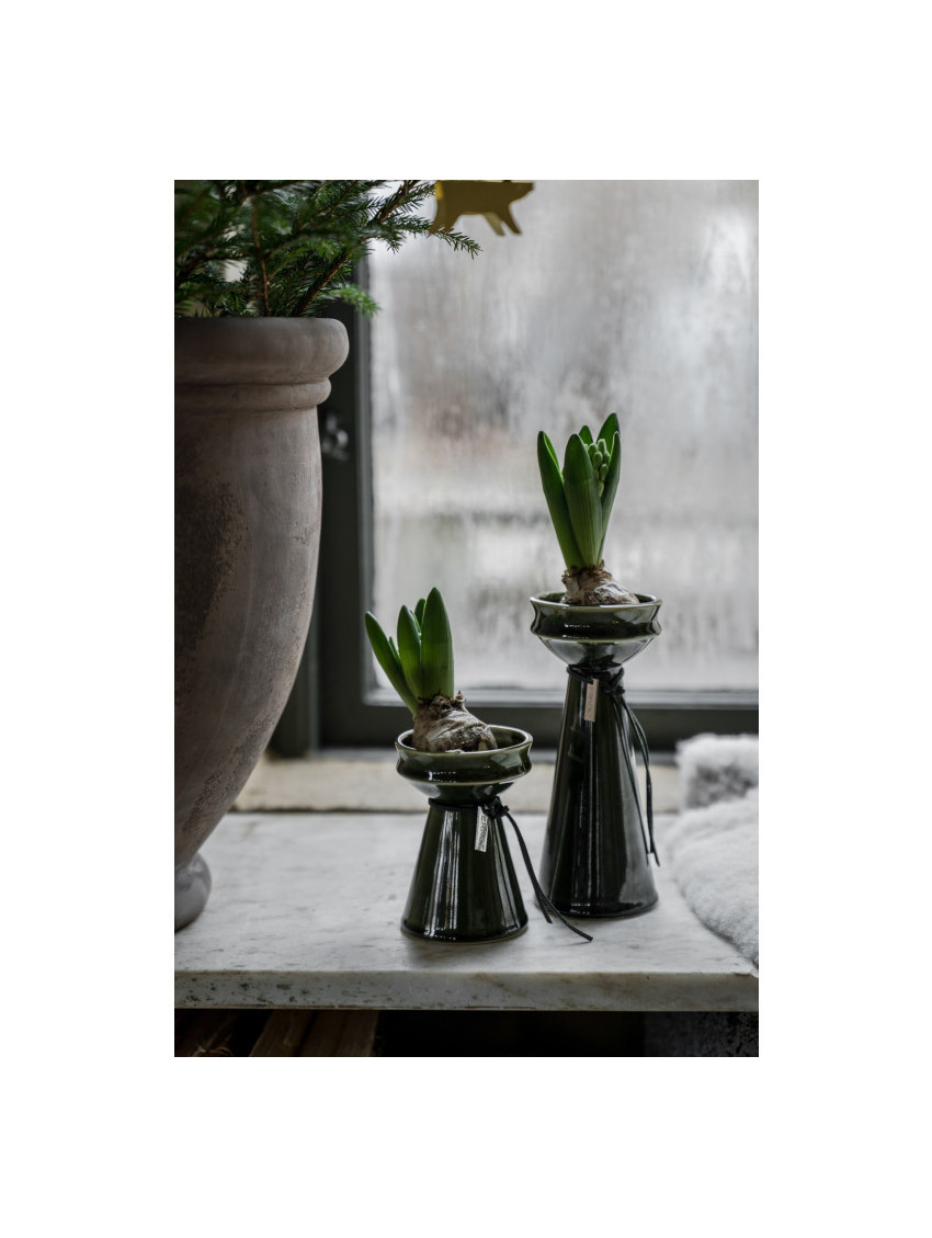 Vánoce jsou o lásce a radosti. Hyacinty vytvářejí tu pravou vůni Vánoc a šíří úžasnou atmosféru. Hyacintové vázy švédské značky ERNST máme k dispozici v různých variantách. Tato je ze zelené lesklé keramiky s uvázanou stužkou z kůže kolem hrdla. Pro všechny milovníky minimalismu. A samozřejmě, že do vázičky můžete dát i jiné kvítí, než právě vánoční...