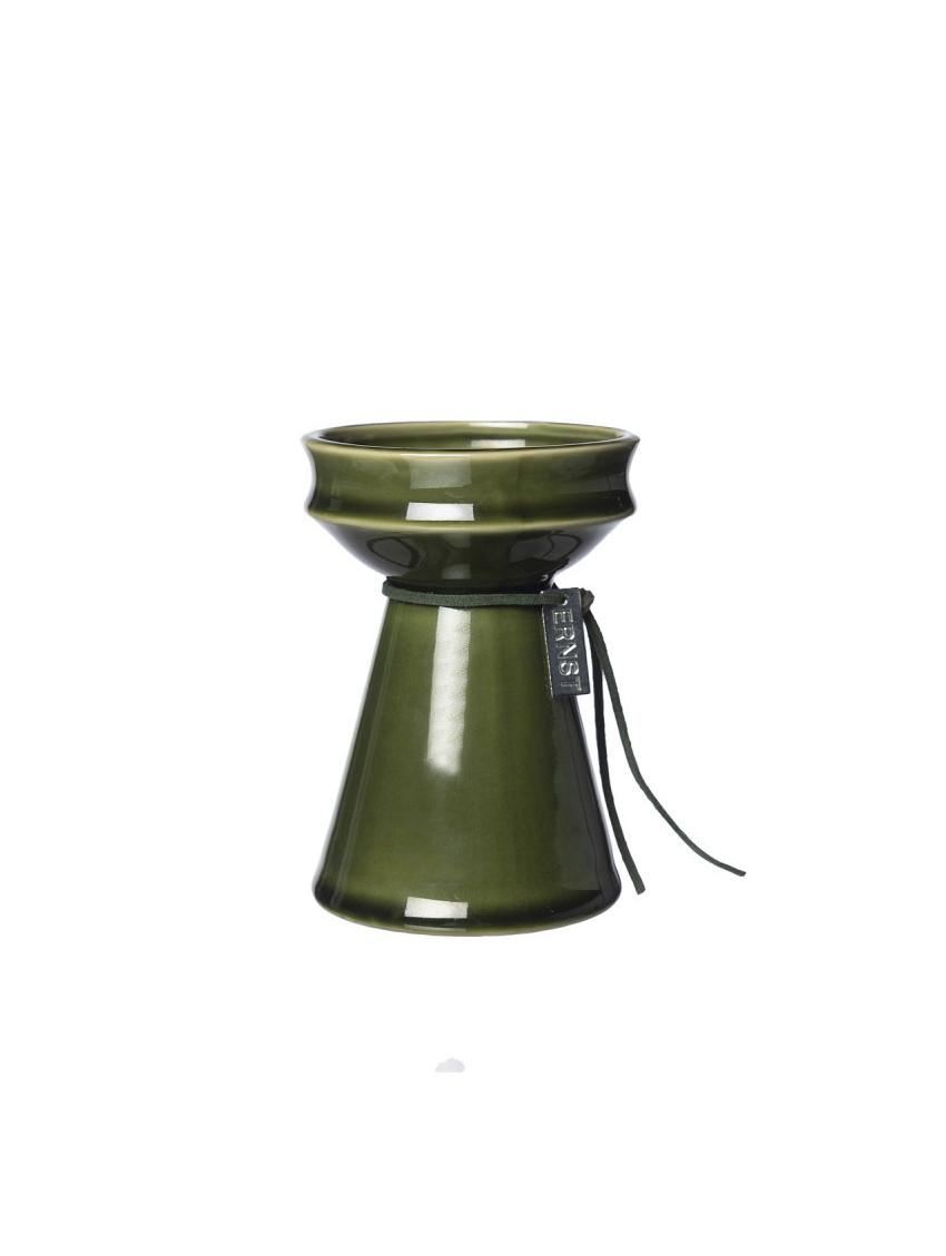 Keramická váza na hyacint z vroubkované keramiky s ikonickým detailem švédské značky ERNST, a to koženou šňůrkou a kovovou visačkou. Dostupná ve dvou velikostech. VázičkaVám může dobře sloužit během celého roku na jakékoliv kvítí. Výška 19 cm, průměr 10 cm