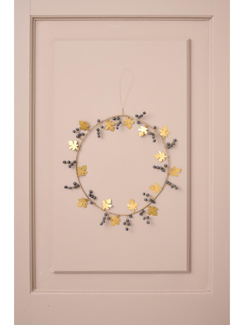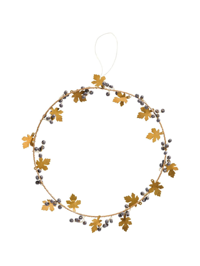 Interiérové zdi nemusí zdobit nutně jen obrázky, fotografie či plakáty. Dánská značka Ib Laursen přichází s nápaditou dekorací v podobě dekorativního věnce. Jemné lístky a bobule z dřevěných korálků, lemující věnec kolem dokola, podtrhuje elegantní zlatavá barva, která dodává věnci sváteční akcent.