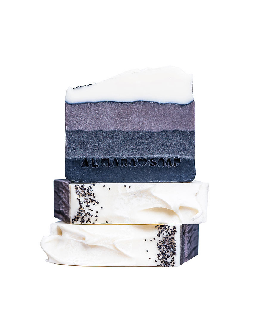 Obsahuje vysoký podíl pečlivě namíchaných rostlinných olejů, které zaručují velmi jemné, hebké mytí a pokožku zanechají vláčnou, vyživenou a nevysušenou. O krásnou barvu mýdla se postaraly minerální barviva, oxid zinečnatý a je ozdobeno makovými zrníčky.