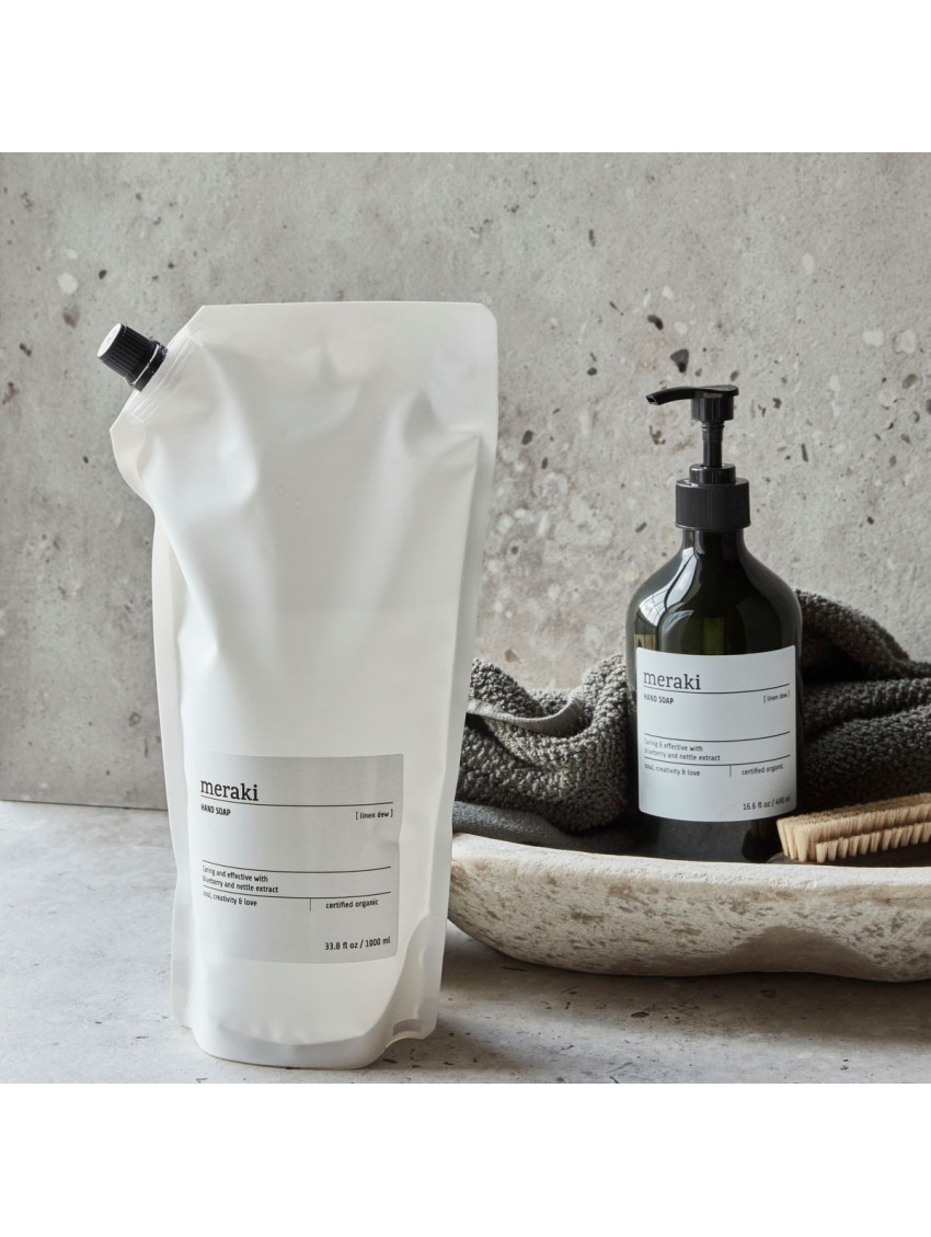 Oblíbené organické mýdlo na ruce dánské značky MERAKI je nyní v náhradním balení 1 litr.