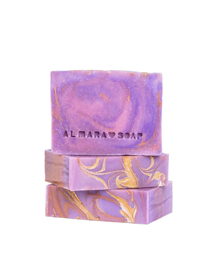 Mýdlo obsahuje vysoký podíl pečlivě namíchaných rostlinných olejů, které zaručují velmi jemné, hebké mytí a pokožku zanechají vláčnou, vyživenou a nevysušenou. O krásnou barvu mýdla se postarala minerální barviva.