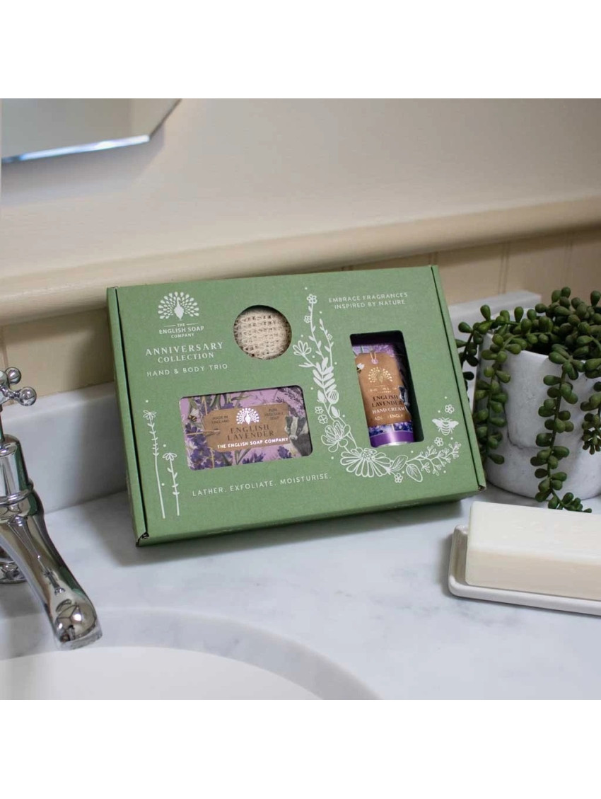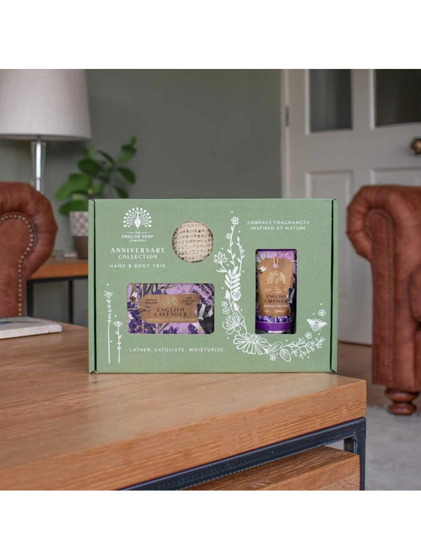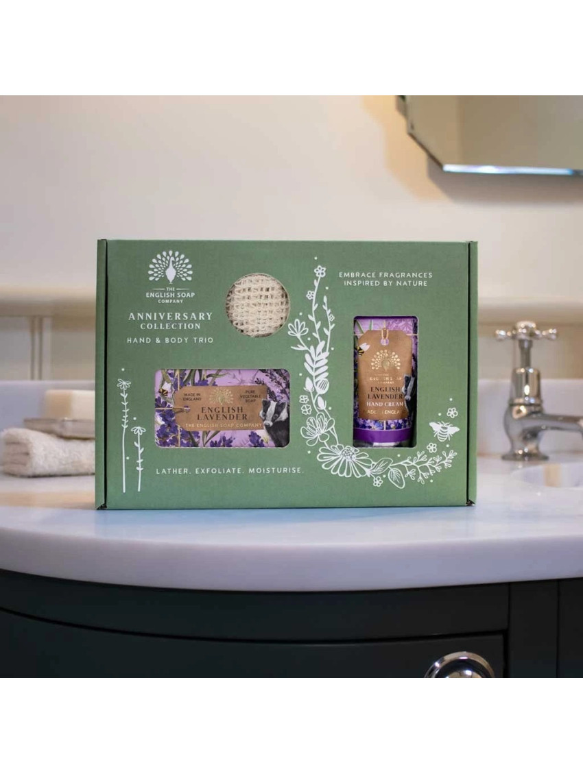 Objevte dokonalý rituál péče o pokožku s luxusní dárkovou sadou English Soap Company. Tato pečující sada obsahuje krém na ruce, tuhé mýdlo s vůní anglické levandule a tkaný pytlík na mýdlo, který prodlužuje jeho životnost a zajistí jemný peelingový efekt.