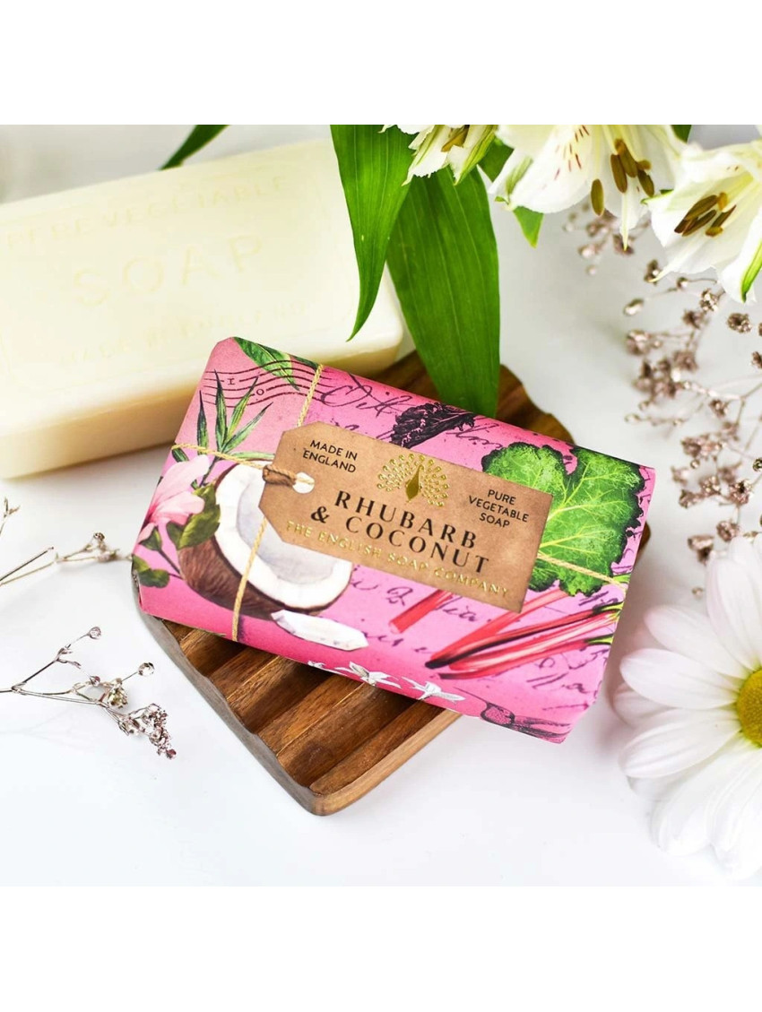 Přírodní tuhé mýdlo s vůní rebarbory a kokosu. Díky bambuckému máslu zanechá pokožku hydratovanou a jemnou.