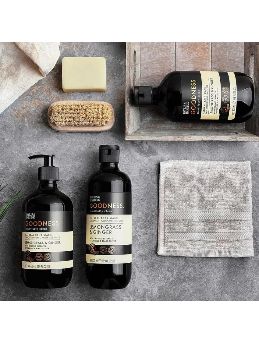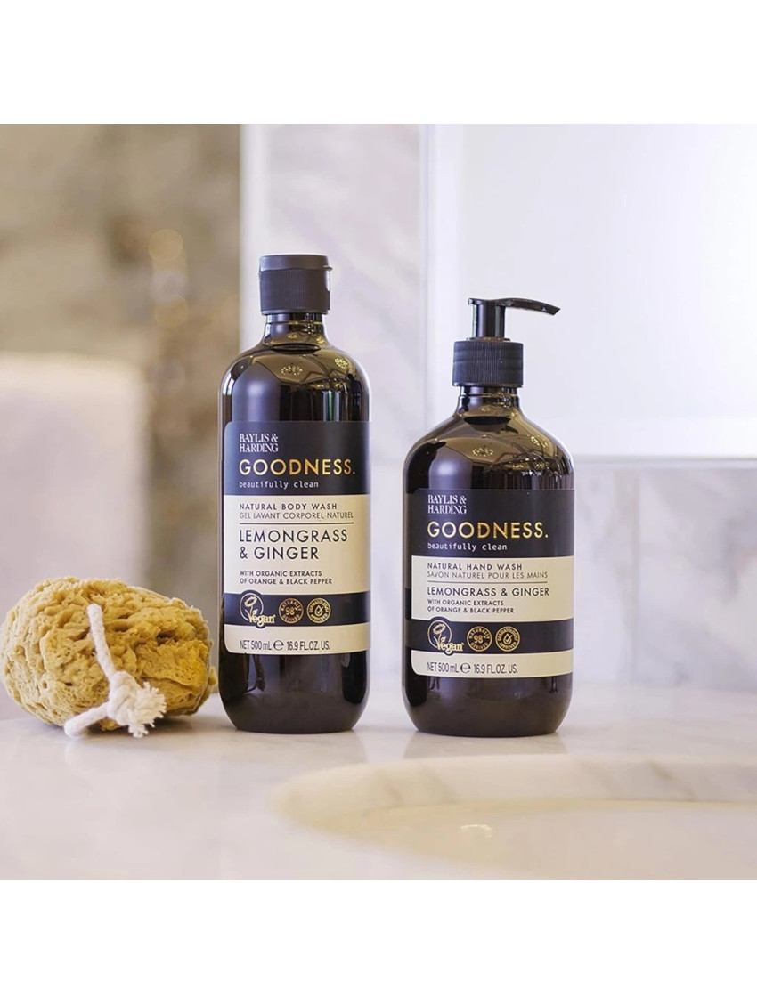Tekuté mýdlo na tělo s osvěžující vůní citrónové trávy a hřejivého zázvoru vás vzpruží při každém použití. Kolekce Goodness pečuje o životní prostředí a pyšní se plně recyklovatelnými obaly se složkami, které jsou z 98% přírodního původu. Obsažené esenciální oleje zanechají Vaši pokožku jemnou a hydratovanou.