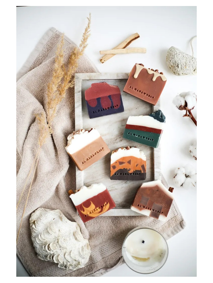 Ručně vyrobené mýdlo, které nejen úžasně vypadá, ale také skvěle voní! Je zelené s bílým a hnědo-zeleným zdobením a jeho vůně je inspirována pistáciemi a mandlovým likérem. Ideální dárek nebo stylový doplněk do koupelny. Složení: Vyrobeno z kvalitních rostlinných olejů a minerálních barviv, které jsou šetrné k pokožce. Použití: Perfektní pro každodenní...