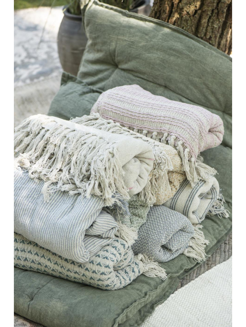 Krásný pléd z recyklované bavlny z rukou dánské značky Bloomingville ve světlých barvách vytvoří svěží jarní atmosféru ve Vašem interiéru. Jemné třásně na okraji dodají plédu šminc ať ho přehodíte přes pohovku nebo okraj křesla. Rozměr: 130 x 160 cm. Lze prát v pračce na 40 stupňů.