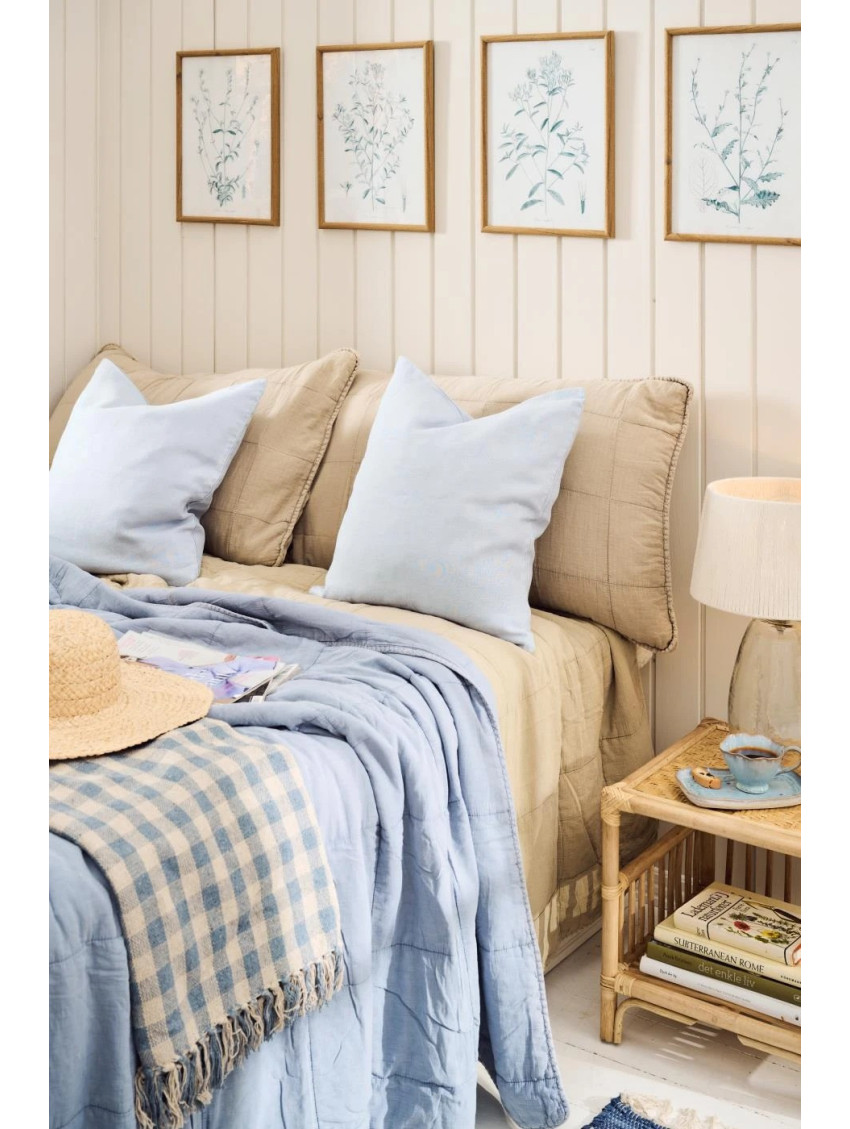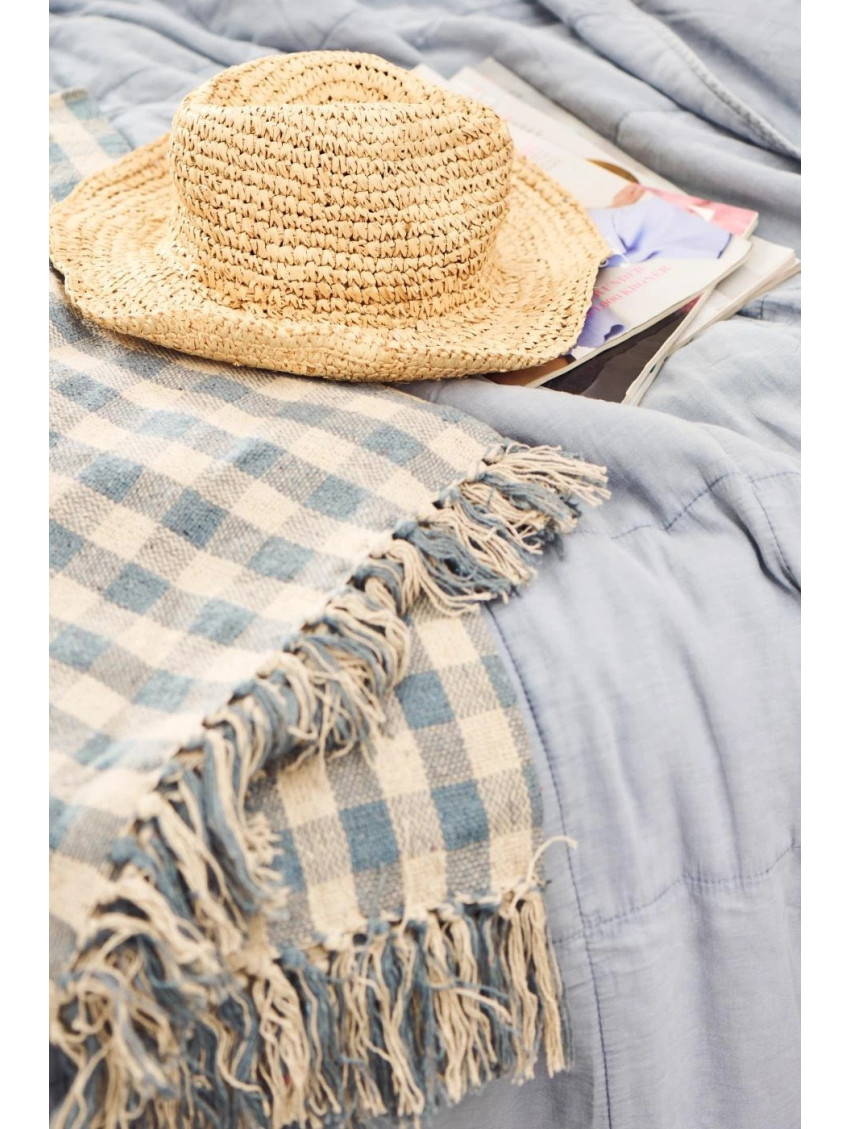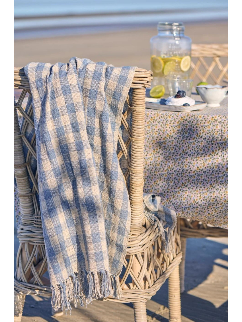 Bavlněný kostkovaný pléd dánské značky Ib Laursen v kombinaci krémové a bleděmodré barvy se skvěle hodí jako přehoz přes postel či sedačku. Stejně tak dobře však poslouží jako pikniková deka, nebo pléd na terasu při venkovním posezení.
