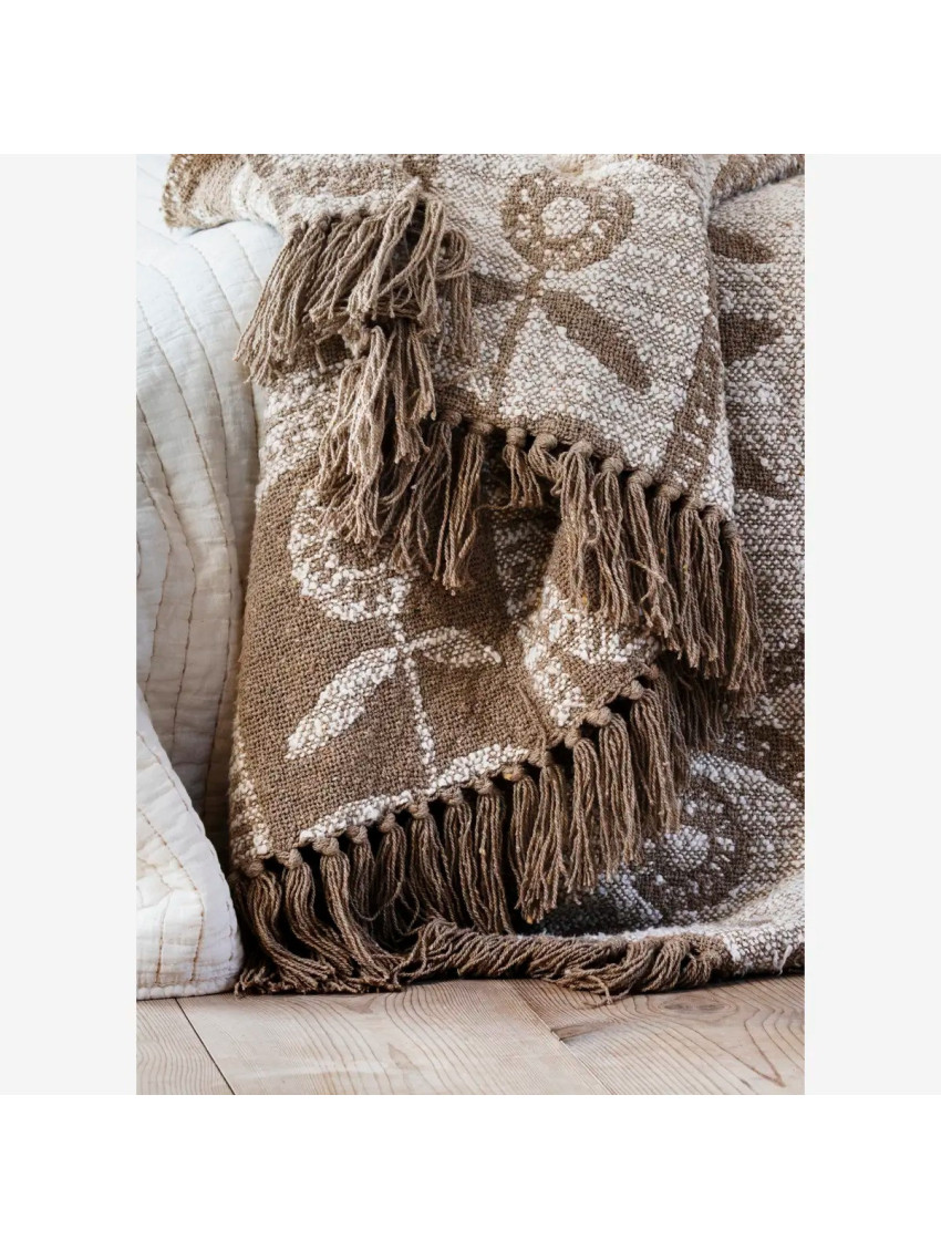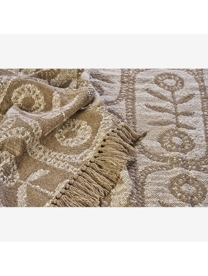 Tento přehoz je příkladem oddanosti udržitelnosti díky recyklovaným materiálům a tradičnímu řemeslnému zpracování. Design čerpá inspiraci z grafických stylů poloviny minulého století a nabízí moderní, ale zároveň nadčasovou estetiku. Jeho oboustranná krása zajišťuje, že se hodí k různým prostředím a stylům, což z něj činí praktickou a stylovou volbu pro rozmanité použití.