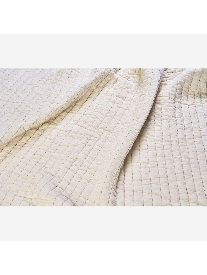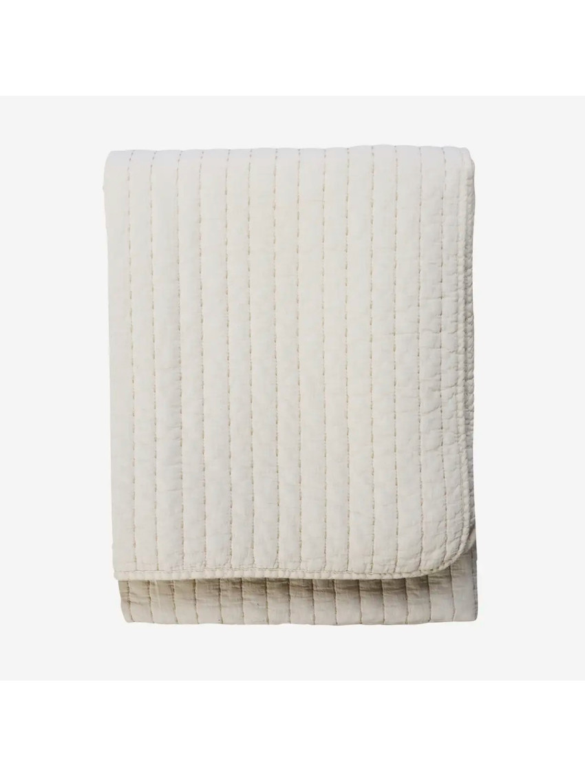 Tento prošívaný bavlněný přehoz je všestranným doplňkem do jakéhokoli interiéru. Vyroben je z bavlny s polyesterovou výplní a nabízí uklidňující slonovinovou barvu. Povrchová úprava s kamenným lazurováním zdůrazňuje jeho měkkou texturu a tlumené tóny. Můžete jej přehodit přes postel nebo pohovku, nebo si ho vzít ven na odpočinek v zahradě. Bezproblémově se hodí k polštářům ve vašich oblíbených barvách nebo potiscích.