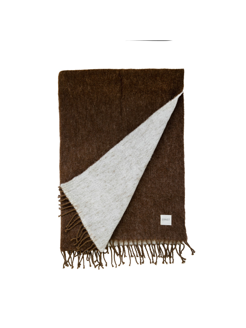 Pléd ERNST, který vás zahalí klidem a teplem, čokoládově hnědý z jedné strany a bílý z druhé. Třásně jemně tančí na okraji a ať už se do ně zahalíte za chladného večera, nebo ho necháte odpočívat na pohovce, dodá místnosti pocit klidu a harmonie.