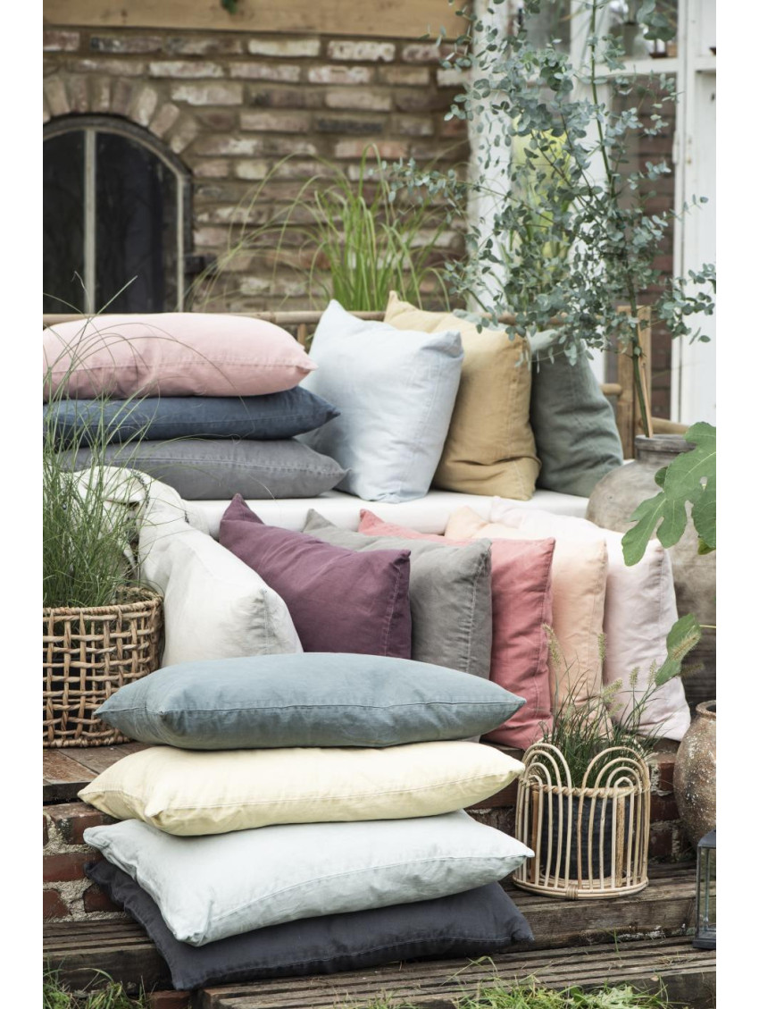 Ručně šitý balvněný povlak na polštář s hrubší strukturou v krásné pudrově růžové barvě s vyšívanými rohy okamžitě dodá místnosti nebo vaší terasové pohovce dekorativní prvek. Doporučené praní naruby na 30°C, nesušte v sušičce na prádlo. Povlak vhodný pro výplň 50 x 50 cm