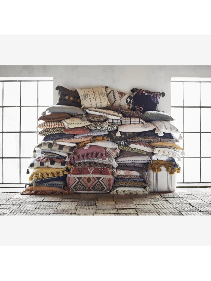 Ručně šitý povlak na polštářek dánské značky Madam Stoltz v jemné pískové barvě bude okatým doplňkem vašeho gauče. Střapce i výšivka ladí interiér do oblíbeného boho stylu. Rozměry: 60 x 40 cm bez výplně. Doporučené čištění v ruce.
