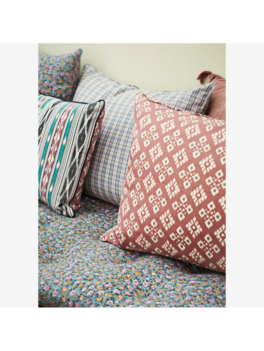 Tento povláček si zamilujete díky jeho materiálu - na omak připomínajícího mušelín. Dekor má v jemném boho stylu v cihlově hnědém odstínu, inspirovaným tradičním indickým blokovým tiskem. Podklad je smetanové barvy. Nechte se zlákat k odpočinku nebesky hebkým prošívaným povlakem na polštář, kterému propůjčuje kapku hravosti střapatý okraj. Materiál: 100%...