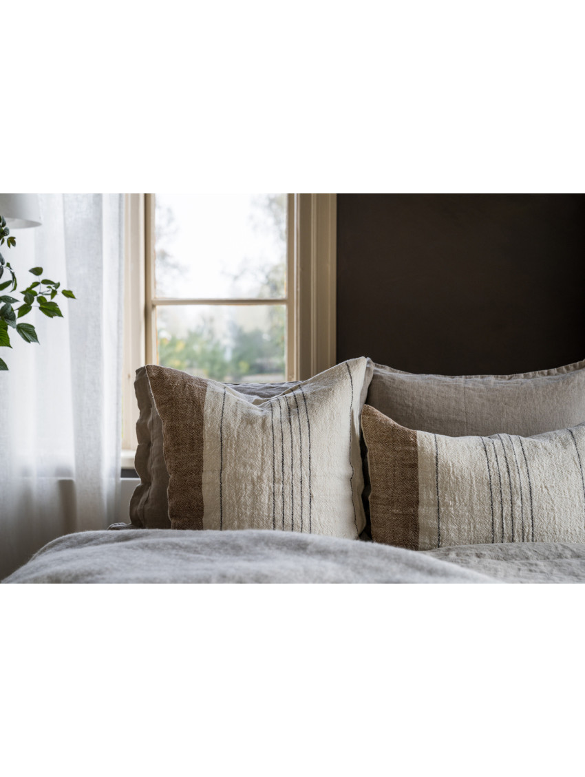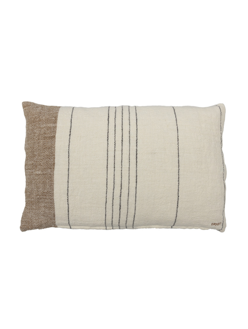 Pololněný povlak na polštář ERNST v uklidňující bílé barvě s několika hnědými pruhy je jako jemný závan čerstvého vzduchu v interiéru. Jeho zemité barvy a jednoduchý design se stanou tichým prvkem pohovky nebo křesla. Polštář, který vybízí k odpočinku a udává v místnosti jemný tón.