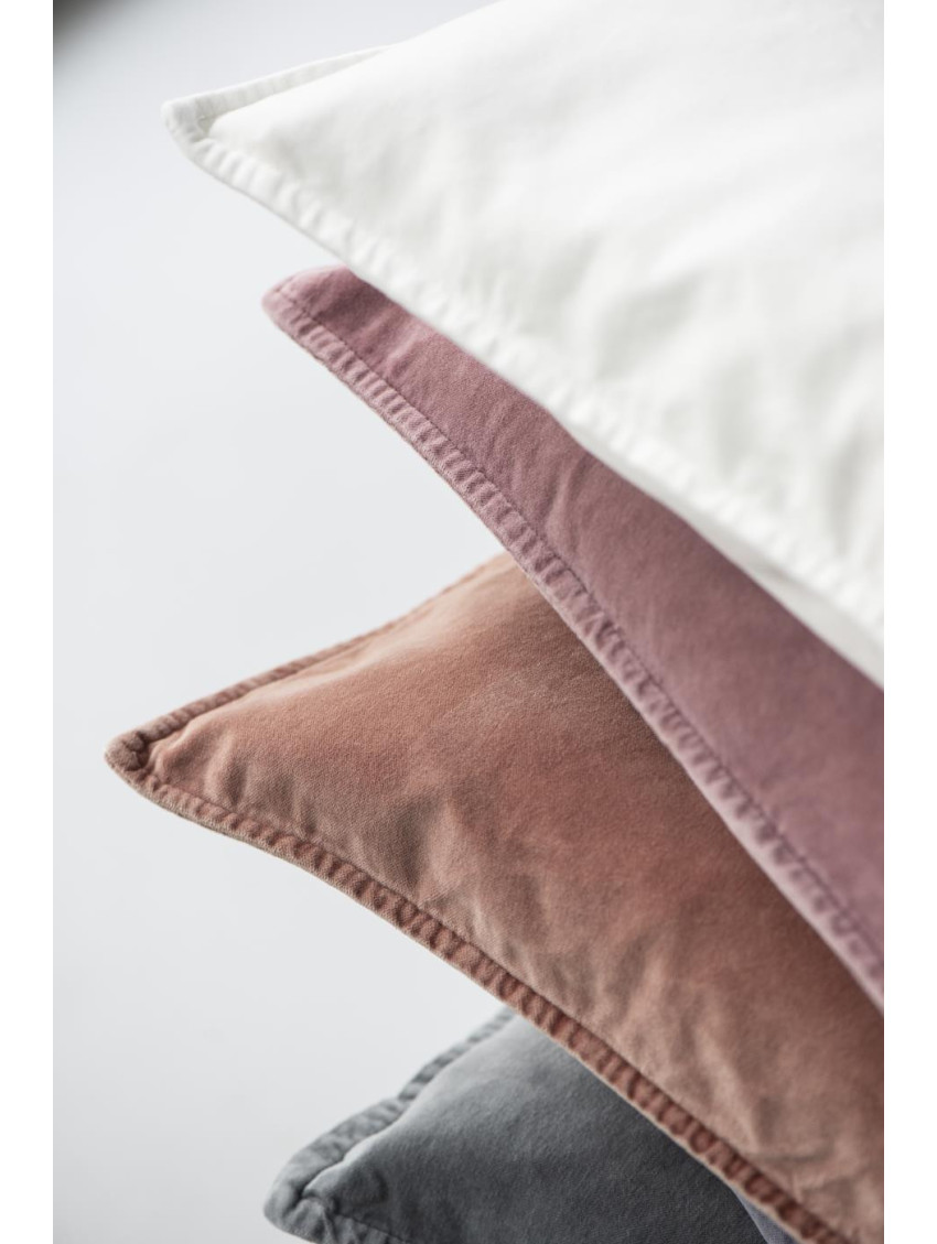 Ručně šitý balvněný povlak na polštář s hrubší strukturou v krásné pudrově růžové barvě s vyšívanými rohy okamžitě dodá místnosti nebo vaší terasové pohovce dekorativní prvek. Doporučené praní naruby na 30°C, nesušte v sušičce na prádlo. Povlak vhodný pro výplň 50 x 50 cm