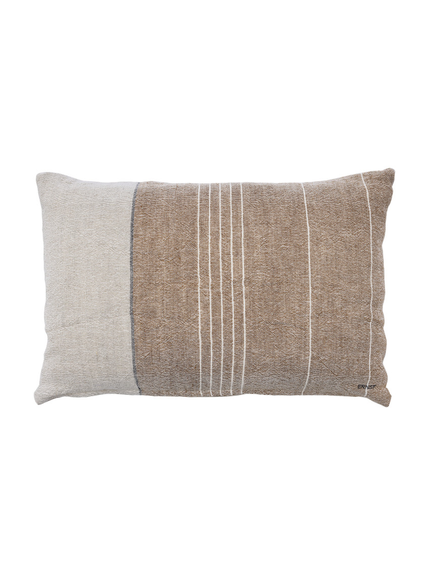 Pololněný povlak na polštář ERNST v uklidňující bílé barvě s několika hnědými pruhy je jako jemný závan čerstvého vzduchu v interiéru. Jeho zemité barvy a jednoduchý design se stanou tichým prvkem pohovky nebo křesla. Polštář, který vybízí k odpočinku a udává v místnosti jemný tón. Rozměry: 40 x 60 cm bez výplně Materiál: 50% len, 50% bavlna
