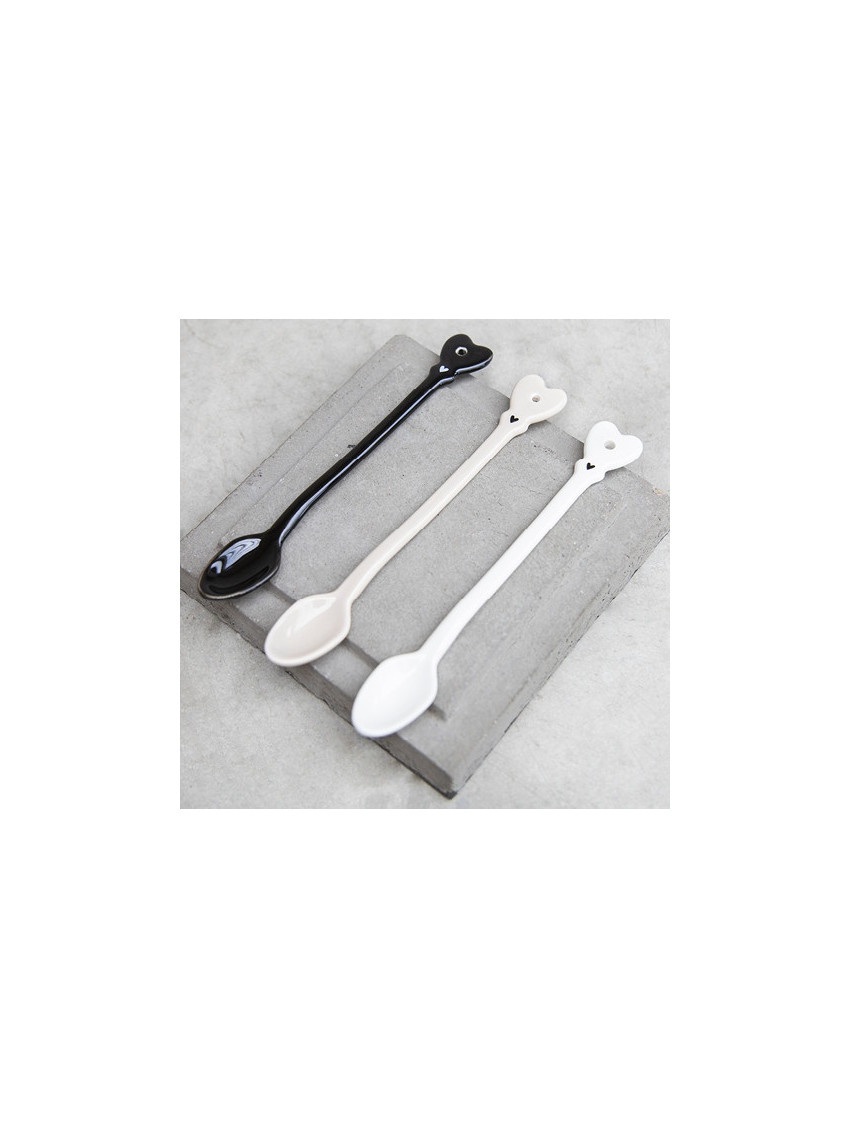 Dlouhá černá lžička s drobným bílým srdíčkem bude ozdobou každého stolování.