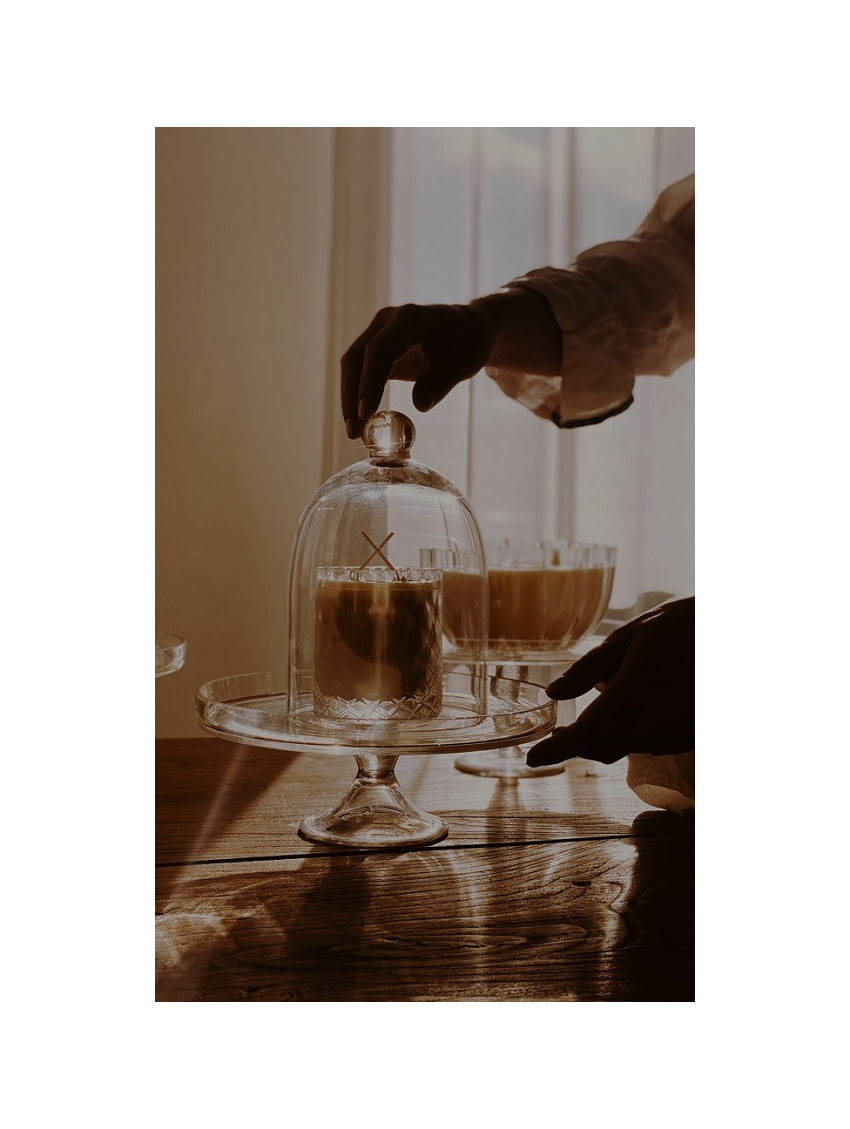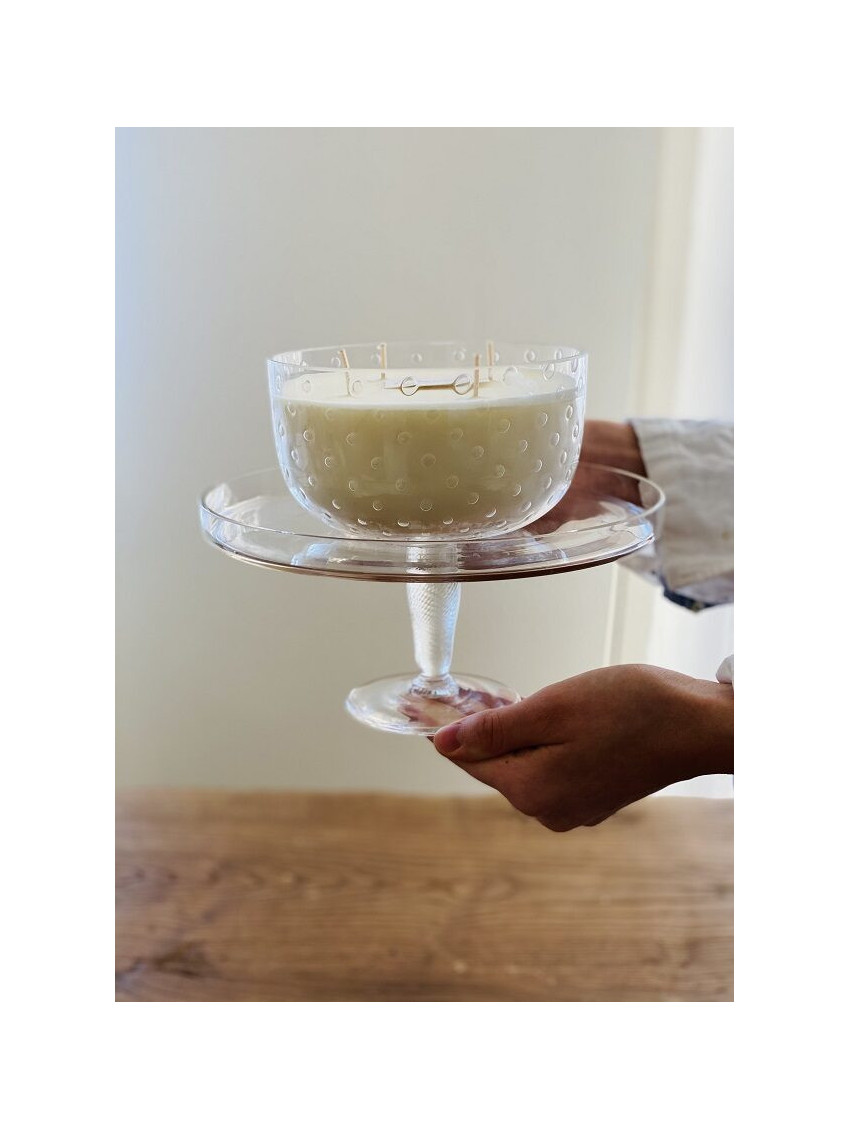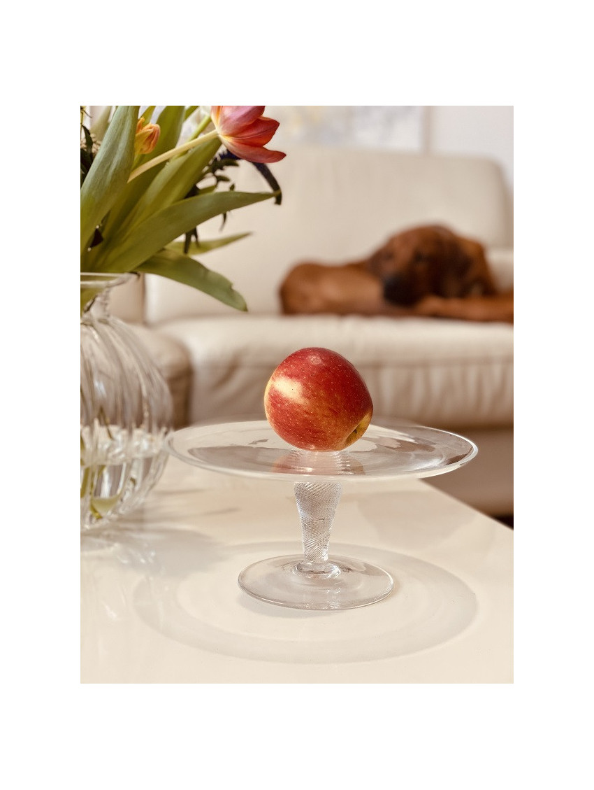 Ručně foukaný dortový stojan s unikátní nožkou z bezolovnatého křišťálu. Krásný doplněk, který pozvedne každý večer strávený s rodinou u večeře, s přáteli u vína, nebo o samotě s knížkou. Široké množství využití – praktických i dekorativních. Můžete na něj dát jednu nebo více svíček, čímž je krásně vyzdvihnete, nebo na něj položit pohoštění či zákusky, třeba větrníčky a sněhové pusinky. Krásný domov je v detailech, to ony z něj činí osobité originální místo, kde se cítíme nejlépe ¦