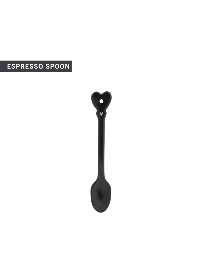 Krásná malá lžička v černé barvě s bílým srdíčkem je skvělým doplňkem k malému hrnečku na espresso stejné holandské značky Bastion Collections.