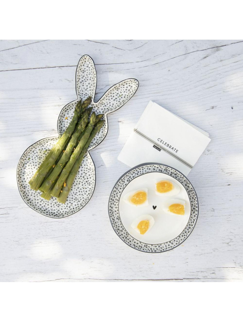 Servírovací větší talíř ve tvaru zajíčka, který využijete především jako sváteční podnos na Velikonoce. Drobné kousky cukroví, nebo jednohubky s jarní pomazánkou budou tomuto zajdovi obzvláště slušet.