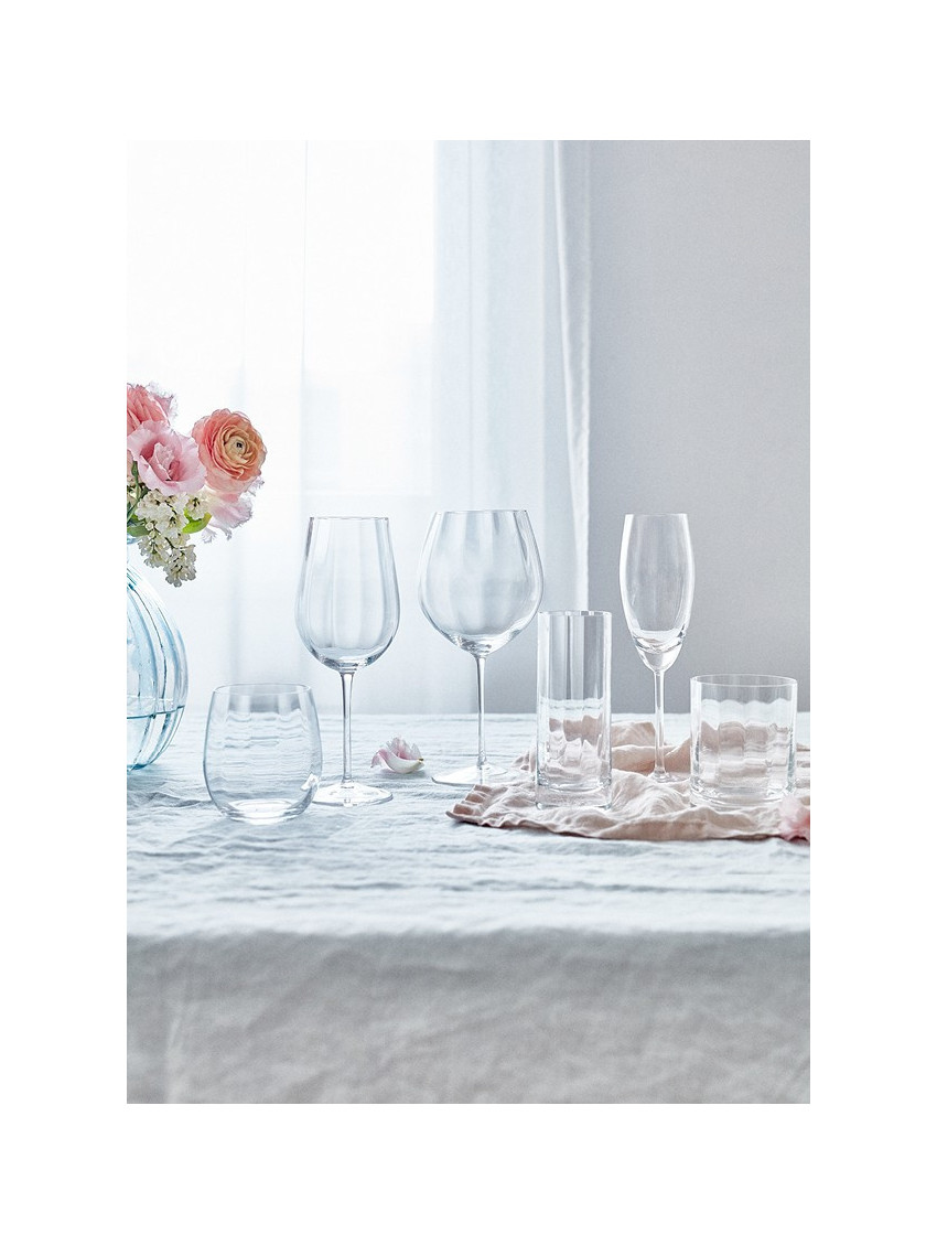 Doplňte rodinný oběd neobyčejně hravým kouskem. Bílé víno se ve sklenicích Optiš rozzáří jako paprsky slunce na hladině vody. Na první pohled dokonale hladké sklo vás překvapí přesnými hranami. Tradiční servírování povznese na úroveň francouzského stolování a dodá jemný třpyt i pastelovému či tmavému servisu. Hodí se i na růžové víno.