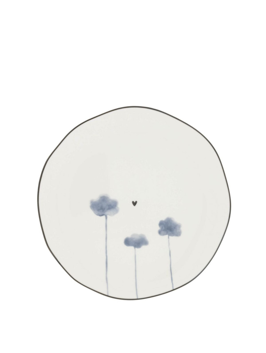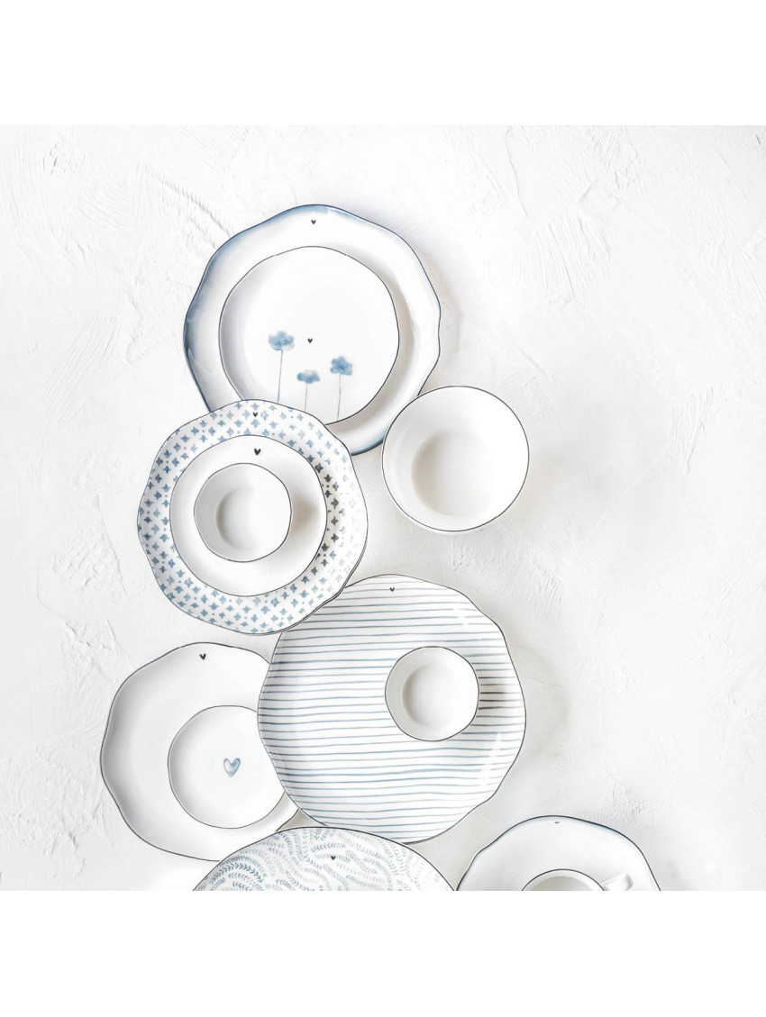 Krásný elegantní talíř s jemně zvlněným okrajem a modrými kvítky z velmi odolné keramiky holandské značky Bastion Collections.