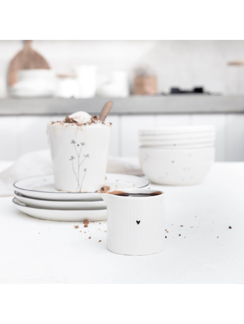 Dokonalost je v detailech a síla v jednoduchosti. To je krédo holandské značky Bastion Collections, která nás zahltila překrásnými kousky z nové kolekce. Jedním z pokladů je i tento hrníček ve zvlněném tvaru doplněný miniaturním vystouplým srdíčkem. Vkusně ho doplníte i stejně zvlněným podšálkem, dezertním talířkem, miskami apod. Výška 6,5 cm x průměr 10...