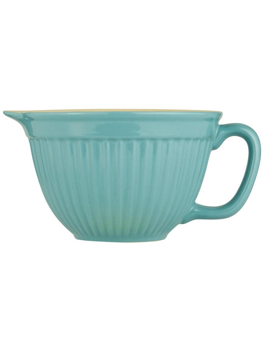 Oblíbená keramická mísa na těsto s vroubkovaným povrchem, v tyrkysové barvě s praktickým ouškem.