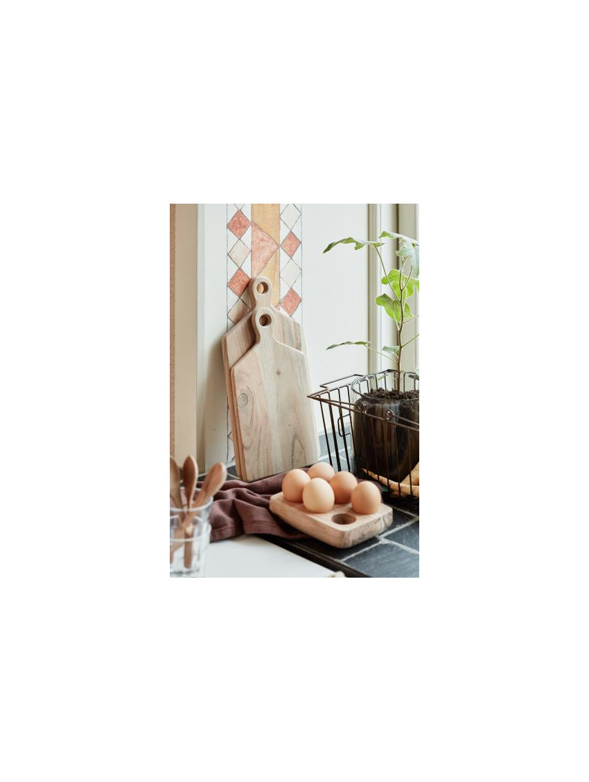 Vyroben je z akáciového dřeva, které vytváří na každém jednom stojanu unikátní kresbu. Stojan má obdélníkový tvar a pojme 6 vajec. Ta jednoduše usadíte do připravených děr a můžete servírovat víkenodovou snídani, nebo ve stojánku uchovávat vajíčka přehledně v lednici.