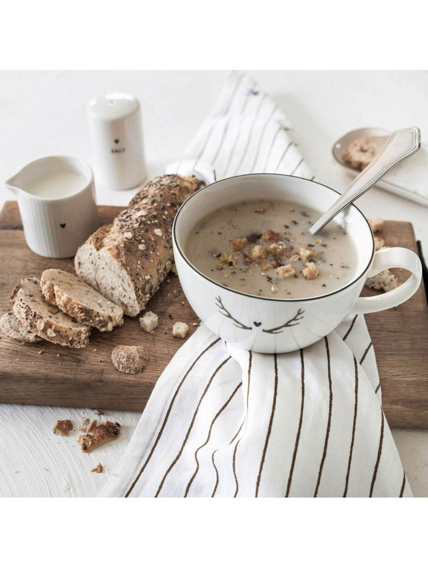Podlehli jste kouzlu keramiky holandské značky Bastion Collections? Pak Vám jistě v kuchyni nesmí chybět tato velká miska na polévku, či salát s ouškem. V obchůdku se však často radujete z konečně velkého hrnku na čaj. Tak tady je. Rozměry: 13 x 9 cm, objem 450 ml