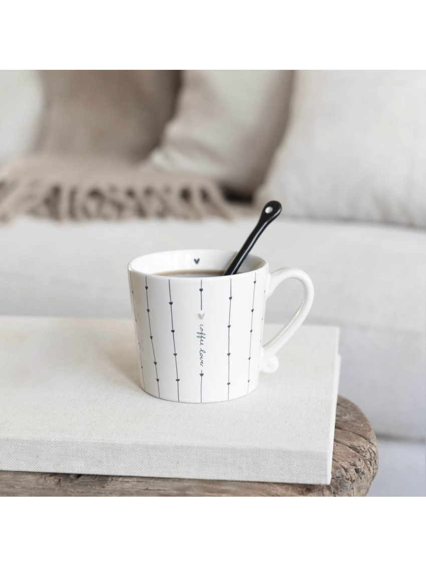 Krásná lžička v matné černé barvě se srdíčkem je skvělým doplňkem k hrnečku stejné holandské značky Bastion Collections.