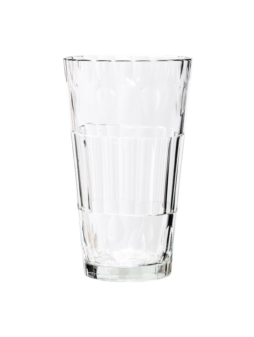 Čirá sklenička na vodu dánské značky Bloomingville se zajímavými prolisy bude ozdobou každého stolu.