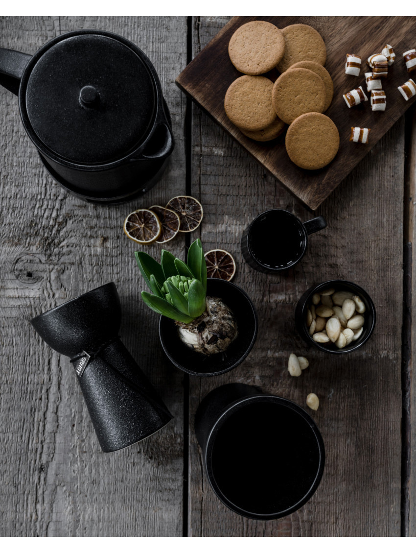 Vytvořte příjemnou chvíli a podávejte espresso v těchto krásných černých industriálních kameninových šálcích švédské značky ERNST.