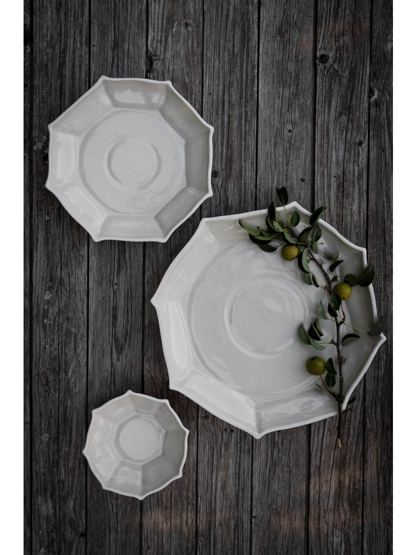 Keramický talíř švédské značky ERNST v přírodní bílé je jednoduchým, ale elegantním detailem stolování, perfektním pro zvýraznění všeho - od drobného pečiva až po krásné ovocné aranžmá.