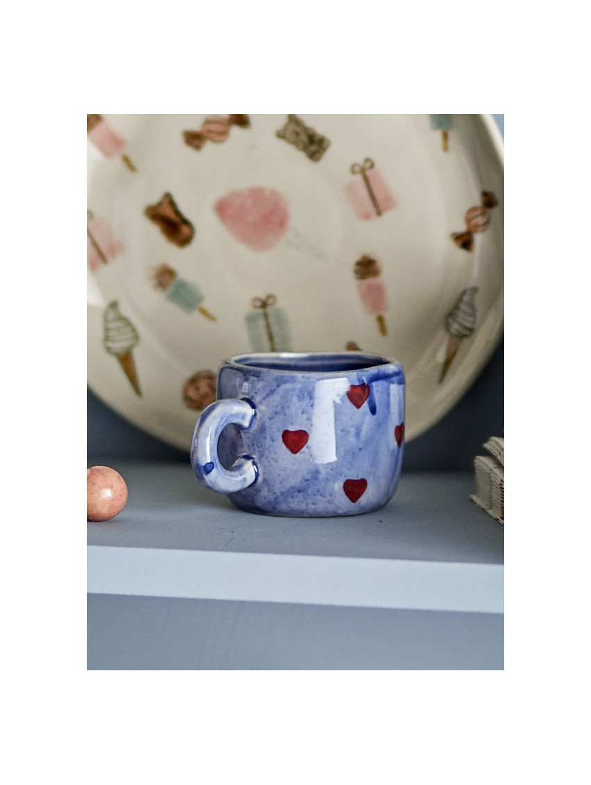 Tento malý šálek má hravý design v jemných barvách s ručně malovaným vzorem srdíček, ze kterého bude chutnat každý šálek mléka, čaje nebo horkého kakaa.