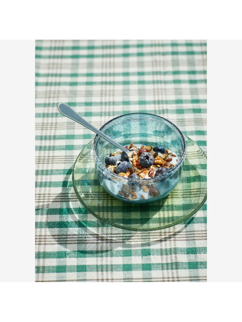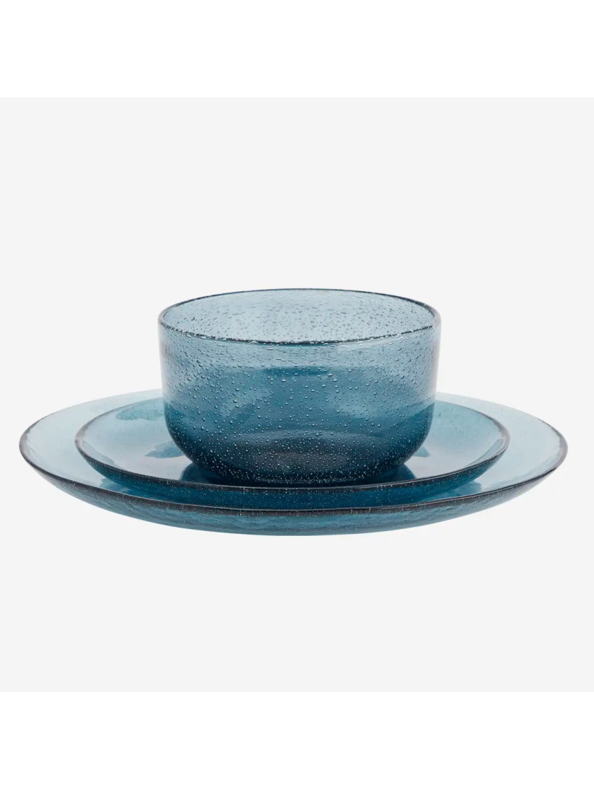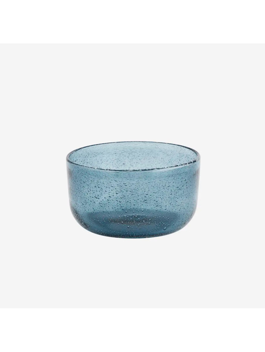 Skleněná miska dánské značky Madam Stoltz v krásné modré barvě s bublinkami ve skle. Ať už si v ní vychutnáte snídaňovou kaši, nebo v ní budete podávat občerstvení návštěvám, svou barvou i provedením bude krásným dekorativním prvkem na stole.