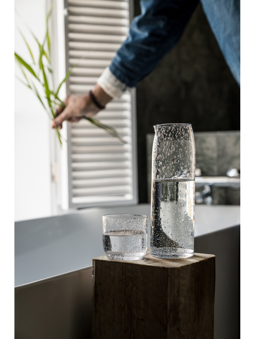 Skleněná karafa od švédské značky ERNST je poctou stylovému a jednoduchému stylu, s malými ozdobnými bublinkami, které vdechují sklu život.