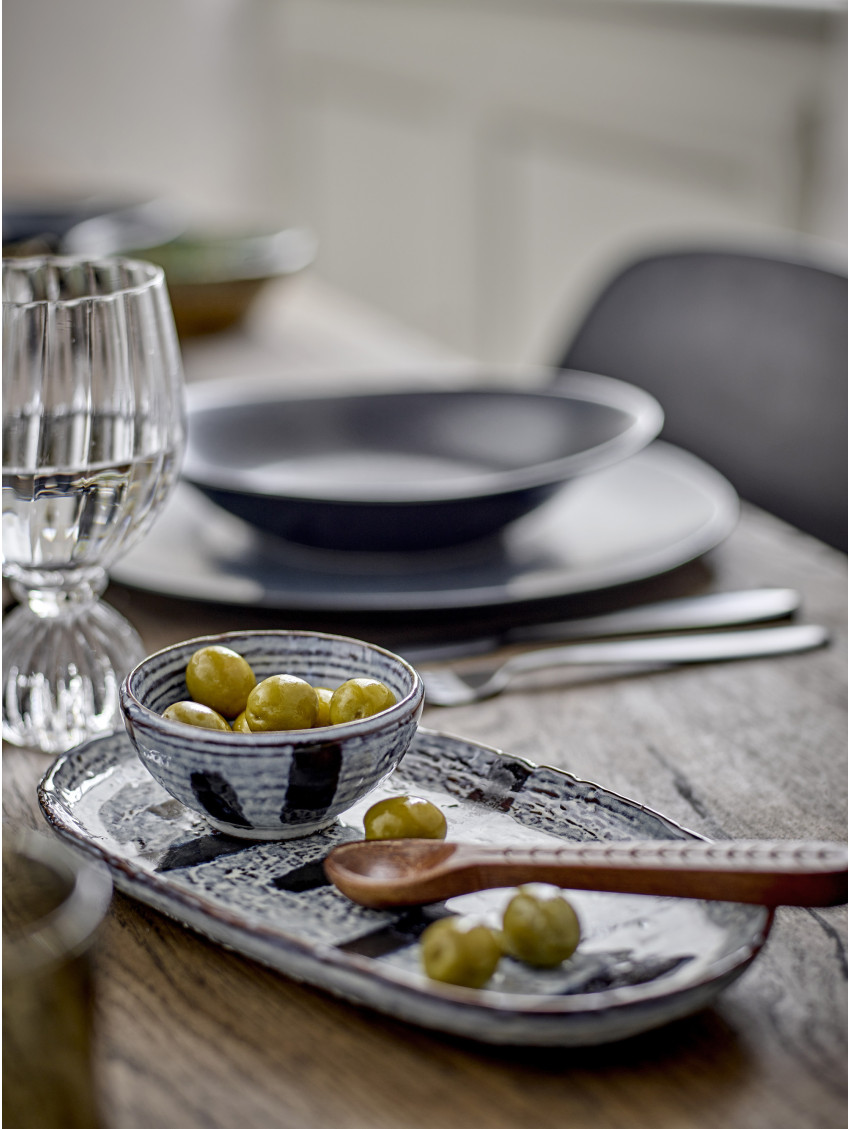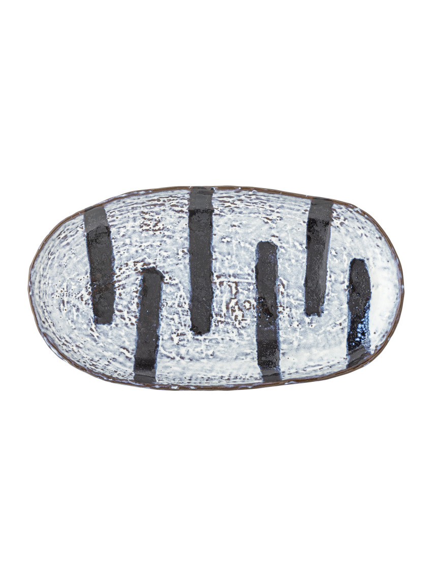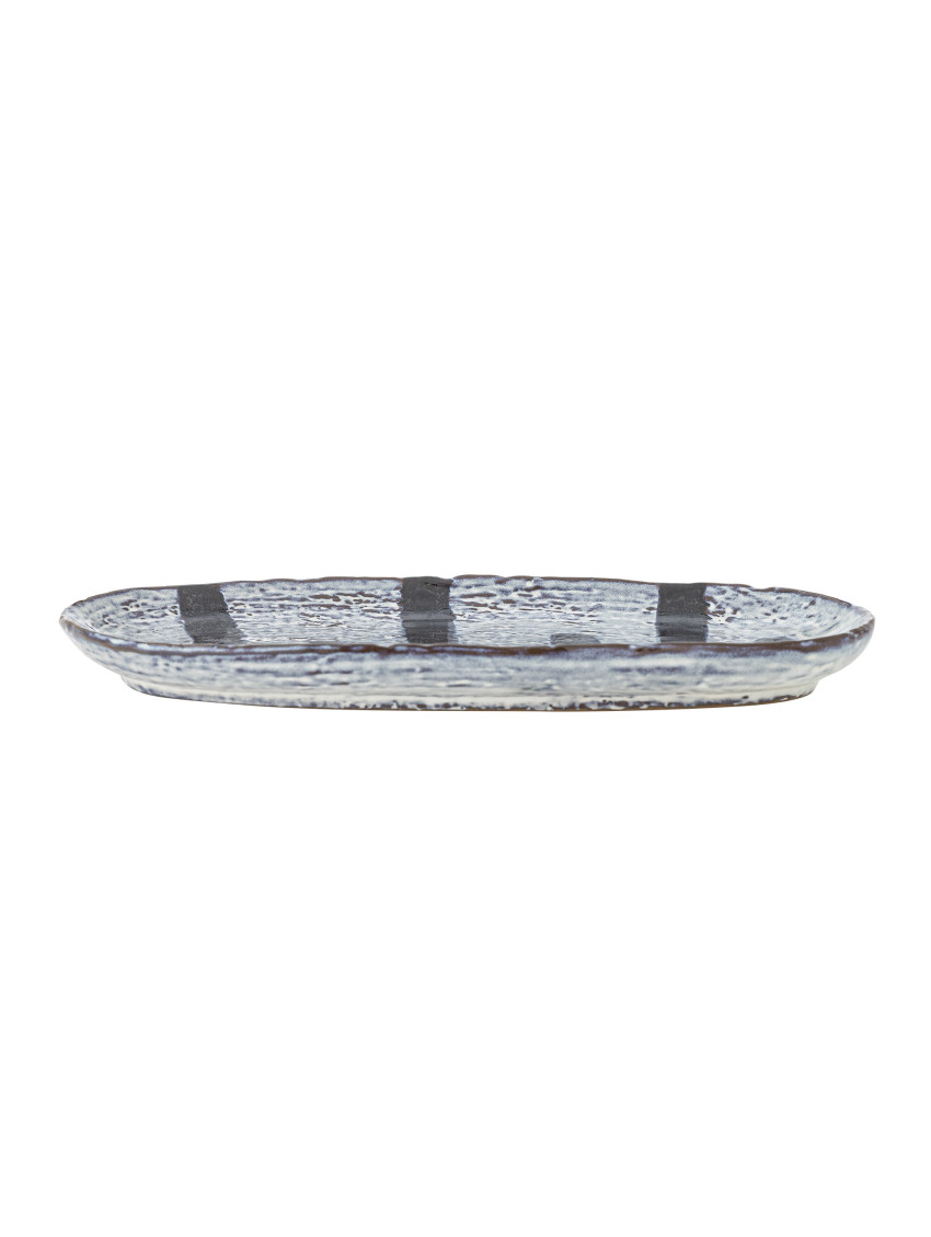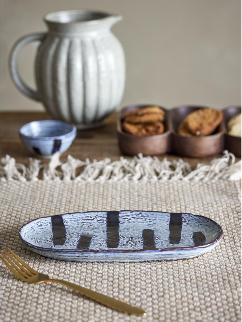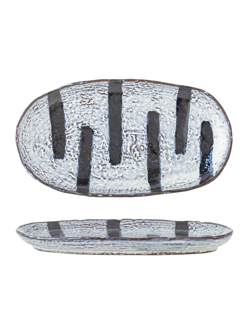 Oválný talíř od Bloomingville je elegantní talíř s ručně malovaným modrým vzorem na reaktivní bílé glazuře, který dává každému talíři jedinečný vzhled. Krásný žebrovaný design dodává talíři rustikální nádech a přirozené barevné variace dělají talíř charakteristickým. Perfektní pro servírování malých jídel nebo jako dekorativní tác.