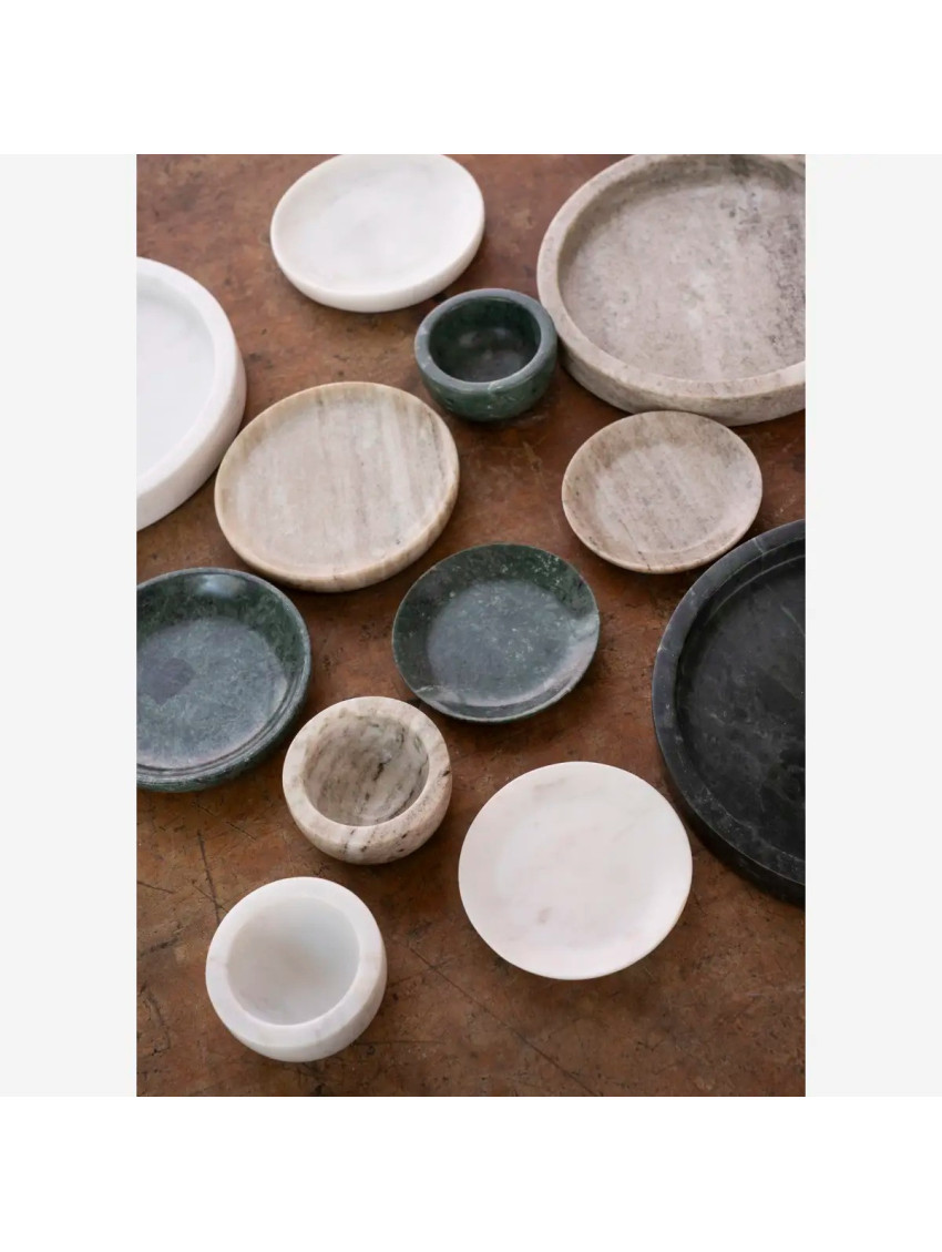 Jednoduchý design a nadčasový materiál tohoto podnosu dánské značky Madam Stoltz mu dodávají přirozeným způsobem nádech sofistikovanosti a krásy. Mramorový tácek je ideální pro malé porce jídla, nebo na uložení šperků a nabízí jak praktičnost, tak i vytříbenou estetiku. V koupelně ho můžete využít i jako krásnou mýdlenku.